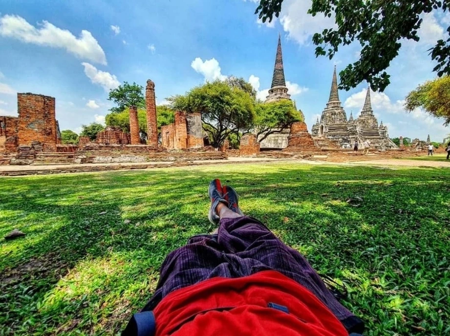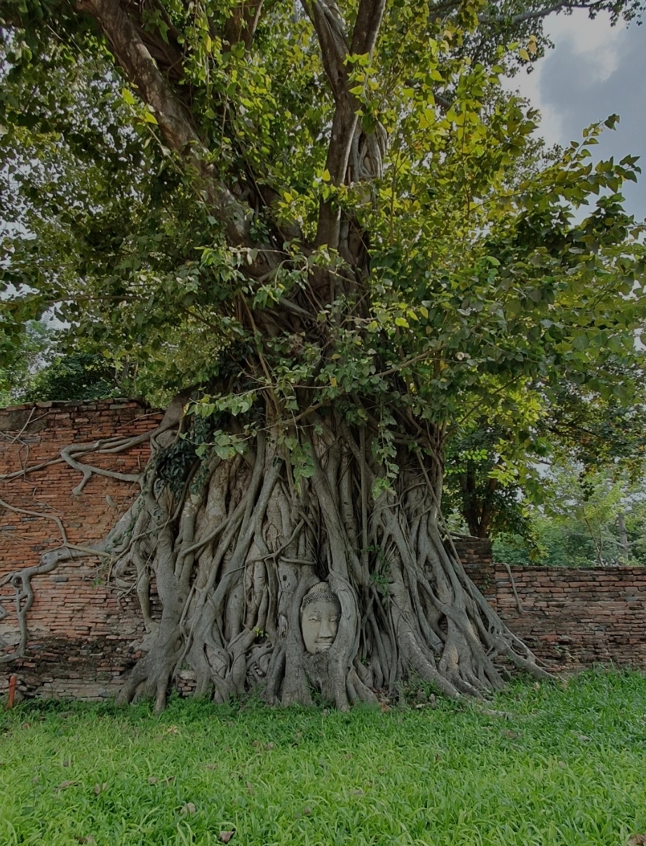 설명하자면 길지만 아무튼 미얀마가 태국 침공 당시 모든 불상들의 머리를 다 잘라버렸는데 잘려나가 바닥에 떨어져 있던 수많은 불상 머리들 중 하나가 그 밑에서 나무뿌리가 자라 올라오면서 자연스레 불상 머리를 감아올리면서 저렇게 불상 머리가 떠 있는 것이다. 아주 신비스러웠다. 일단 그 사연을 알기 전이라도 누구나 그냥 봐도 신비스러운 모습이다.