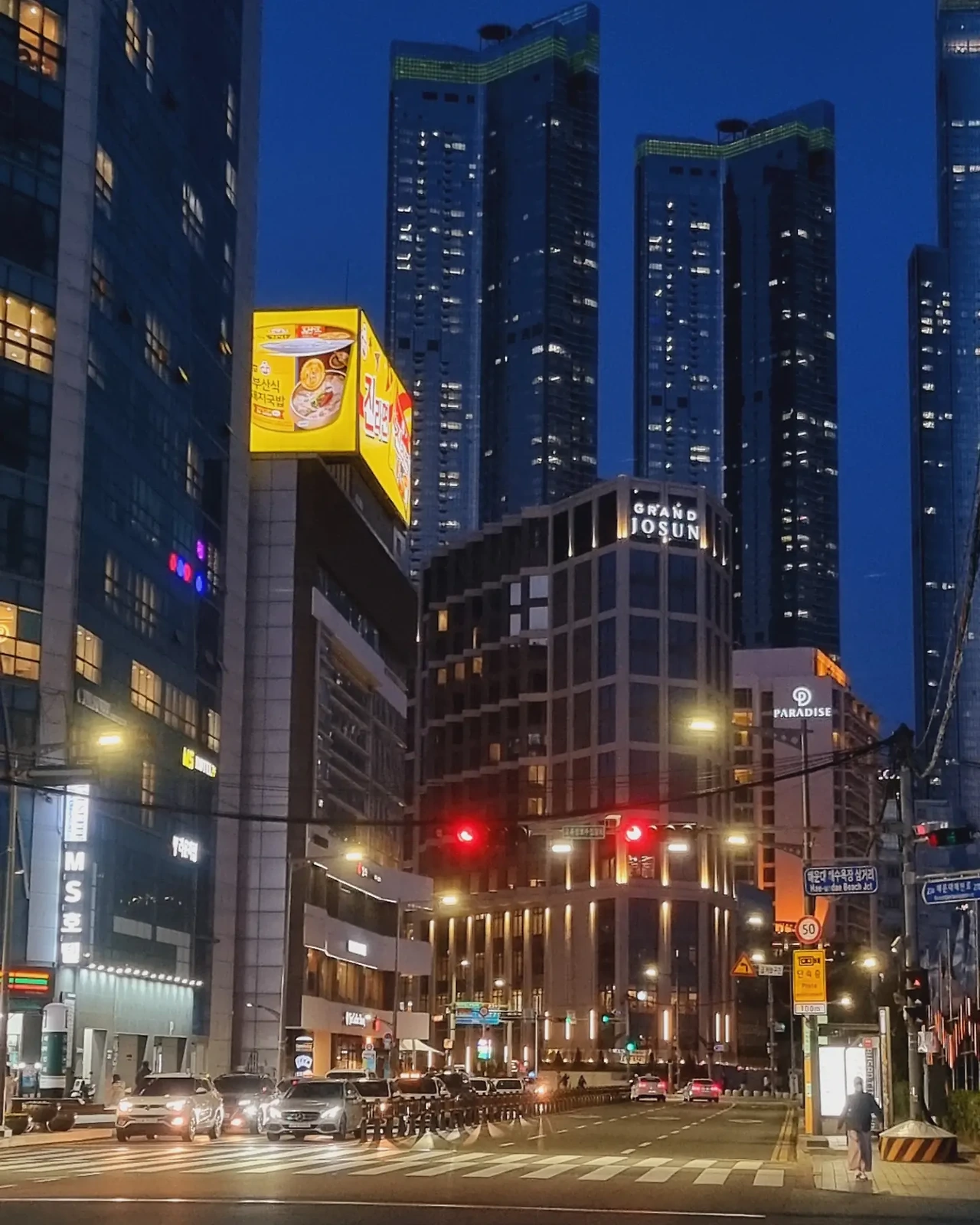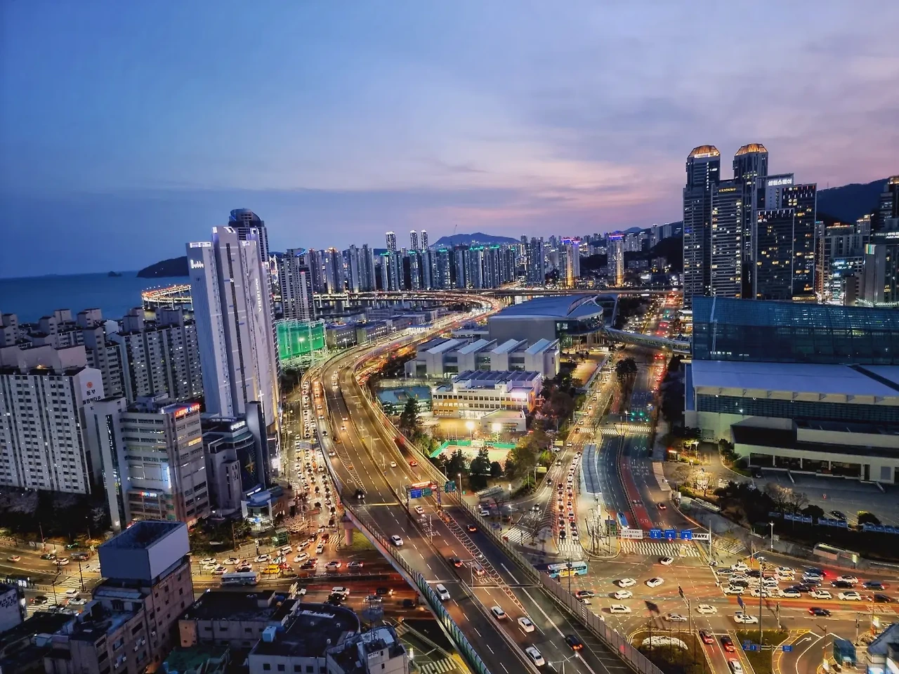 부산 해운대 앞 도로와 '더베이101'의 모습