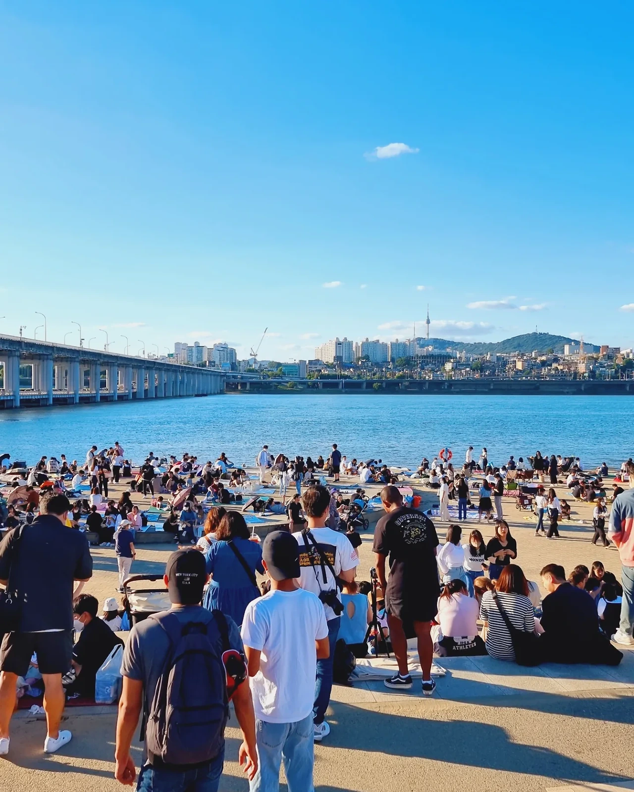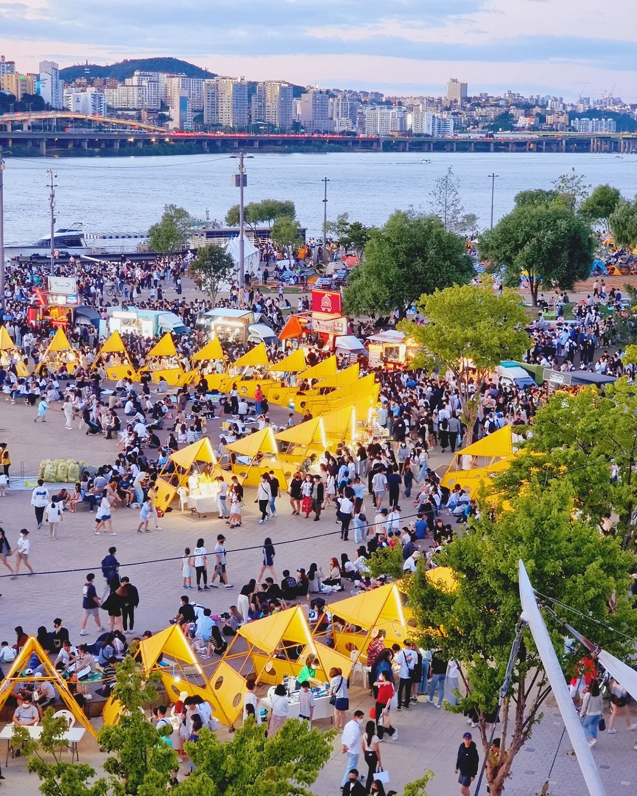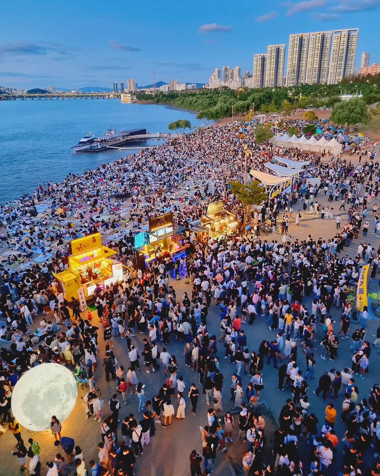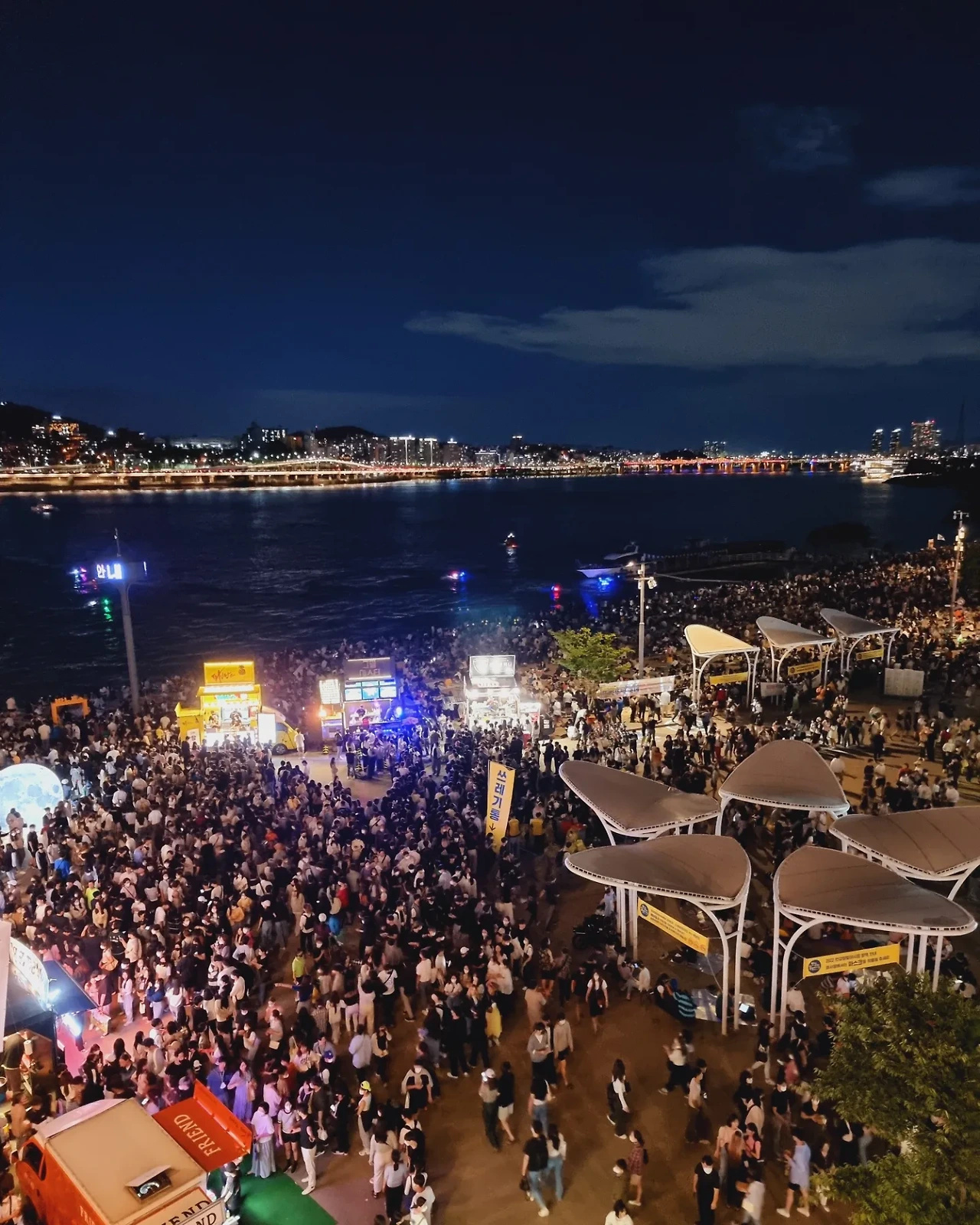 얼마 지나지 않아 반포 한강공원에 도착했는데 이건 뭐 전쟁통에 피난민들을 보는 것도 아니고 정말 엄청나게 많은 사람들이 잠수교 주변 한강공원에 빼곡히 모여 있었다. 그 이유는 바로 3년 만에 개최하는 '서울밤도깨비야시장/한강달빛야시장' 때문이었다. 난 그걸 모르고 그냥 나왔는데 정말 오랜만에 보는 수많은 인파를 보니 반갑기도 하고 어질어질하기도 하고 그랬다.
