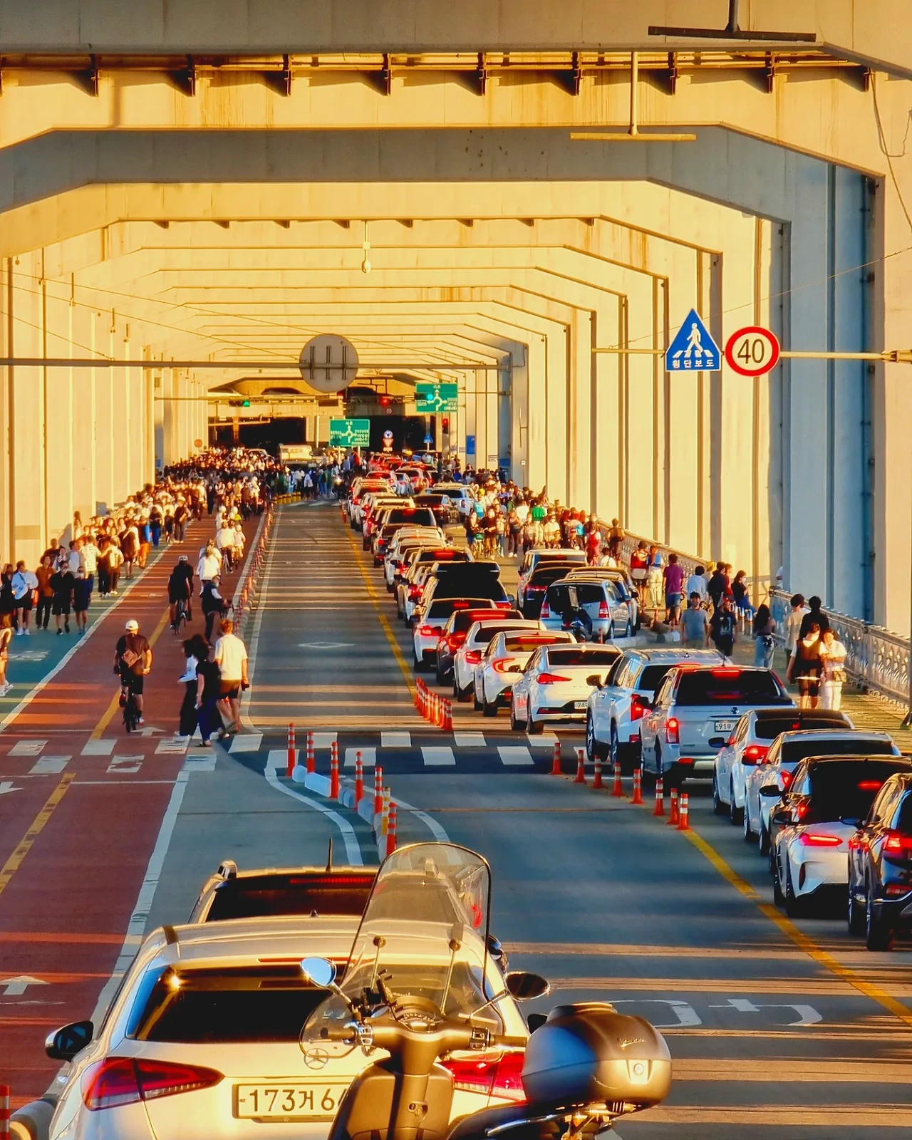 다시 잠수교를 건너기 전 차들로 가득한 잠수교의 풍경 또한 멋스러워 보였다. 그래서 바로 휴대폰 카메라로 구도를 잡고 사진을 찍으니 역시나 멋스로운 트래픽 사진 성공!!