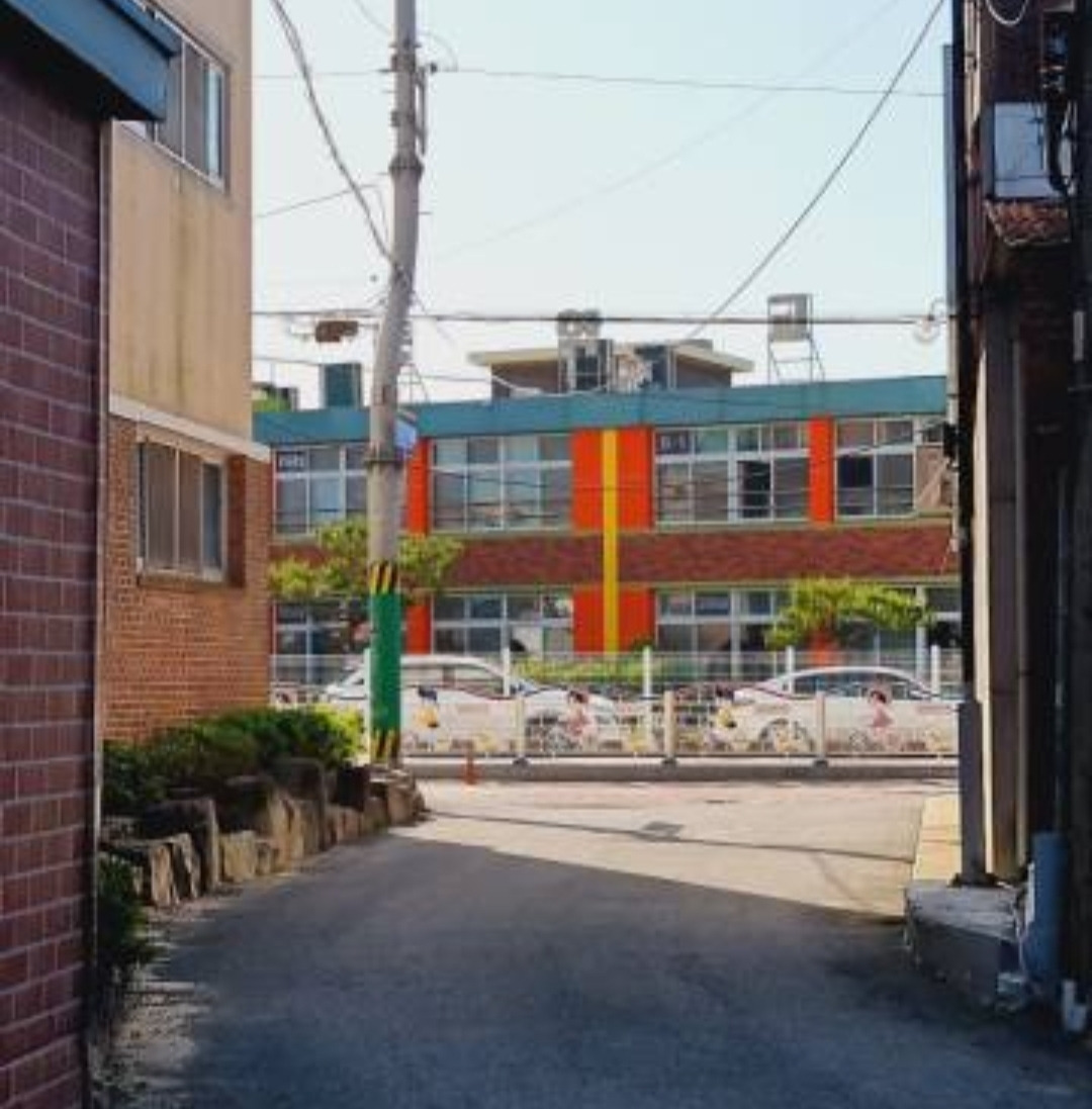 논산 강경읍 대흥시장 맞은편에 위치한 집창촌에서 걸어서 불과 1분 남짓 거리에 위치한 황상초등학교의 모습
