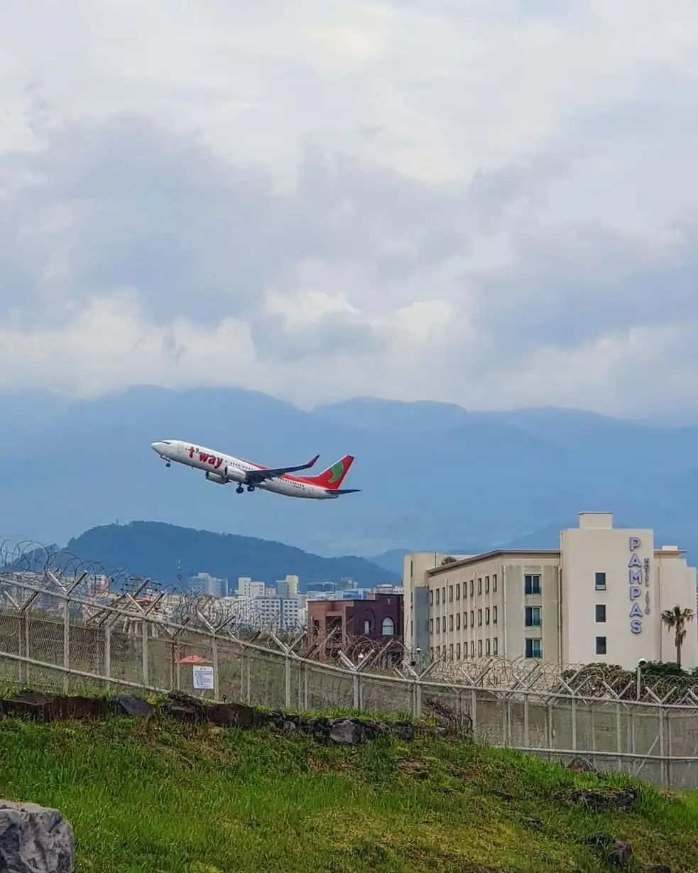 특히 제주공항 바로 뒤편에 있던 호텔은 뒤로는 쉽게 경험하기 힘든 활주로 뷰~ 정면으로는 바로 멋진 도두 해안도로와 바닷가가 보여서 정말 정말 좋었다.