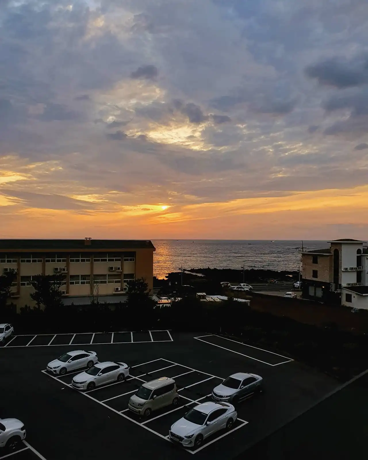 호텔 객실 발코니에서 바라 본 도두해안도로 앞에 펼쳐진 해질녘 풍경~