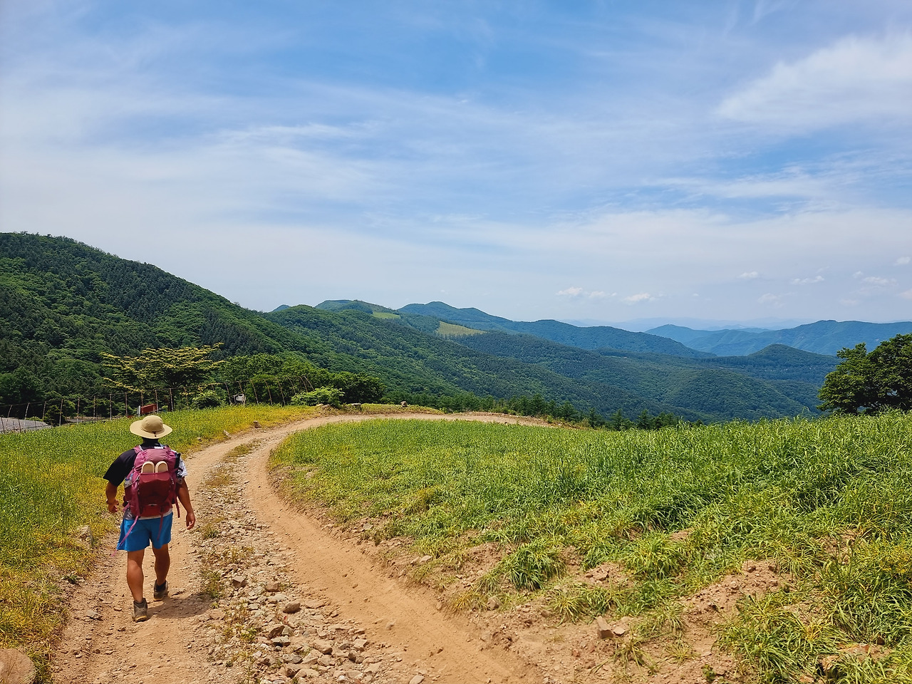 조망이 터지면서 눈앞에 펼쳐진 풍경은 말 그대로 첩첩산중이었다. 운탄고도를 걷지 않았더라면 이런 첩첩산중의 길을 걸을 일도 없을뿐더러 그곳에 그런 길이 있다는 것 자체를 평생 몰랐을 것이다. 누군가 만들어놓은 길을 따라 걷는 재미가 바로 이런 것이다. 길을 만든 기관, 단체, 국가 등의 그 의도를 따라 명분을 갖고 걷다 보면 평상시에는 절대 걸을 일이 없는 길을 걷게 되니 참으로 낭만적이다.