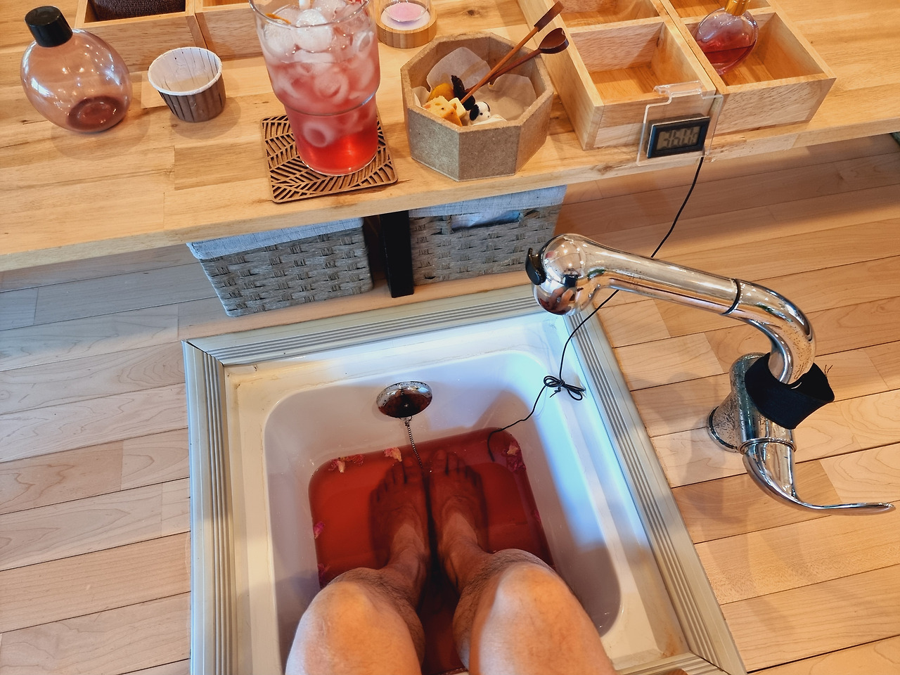 10. 15,000원을 내면 약 30분 동안 족욕체험을 할 수 있다. 따듯한 와인에 트레킹에 지친 발의 피로를 풀어보자.