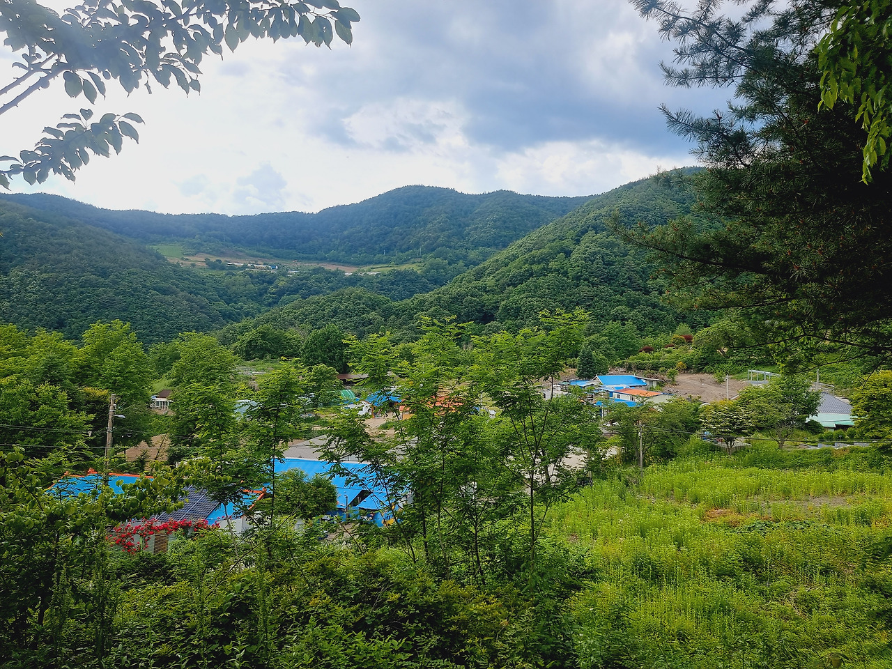 2길의 후반부 구간에서 모운동벽화마을 도착 30여분 전 저 멀리 내려다보이는 모운동 벽화마을. 이 작은 오지마을에서 만여 명의 광부들이 살았었다고 하니 믿기지가 않는다.