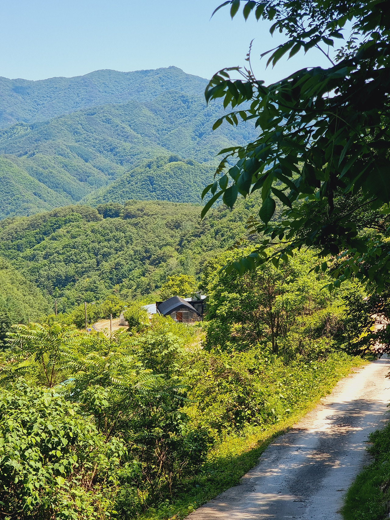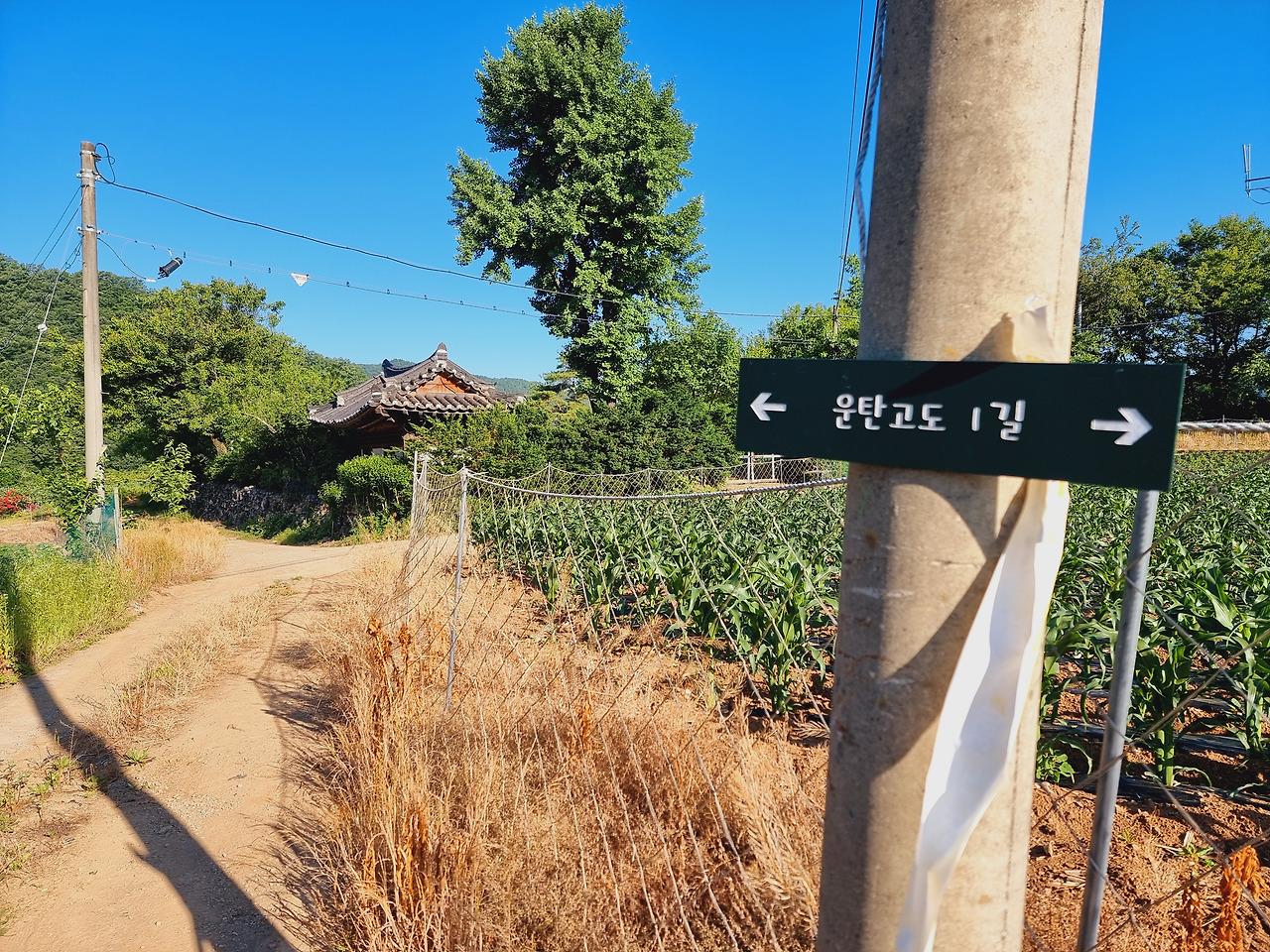 그때 알았다. 출발지점이 처음 도착한 청령포 주차장이었단 사실을, 시작부터 30여분 가까이 헤맨 것이다. 몰려오는 짜증스러움을 참고 주차장 바로 뒤편 숲길로 진입했다. 숲길을 걷는 내내 아침공기가 매우 깨끗하고 상쾌하게 느껴졌다. 30여분 남짓 울창한 숲길을 걷다 보면 시야가 트인 논밭이 나오고 간혹 집들이 보인다.