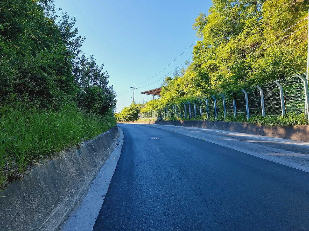 다리를 건너 좌측 차도를 따라 공도를 걷는다. ??? 언덕까지 체감 상으로 꽤나 긴 공도를 올라가야 한다. 문제는 이 구간은 별도의 인도길이 없이 말 그대로 좁은 차도 옆을 알아서 요령껏 걸어야만 한다.