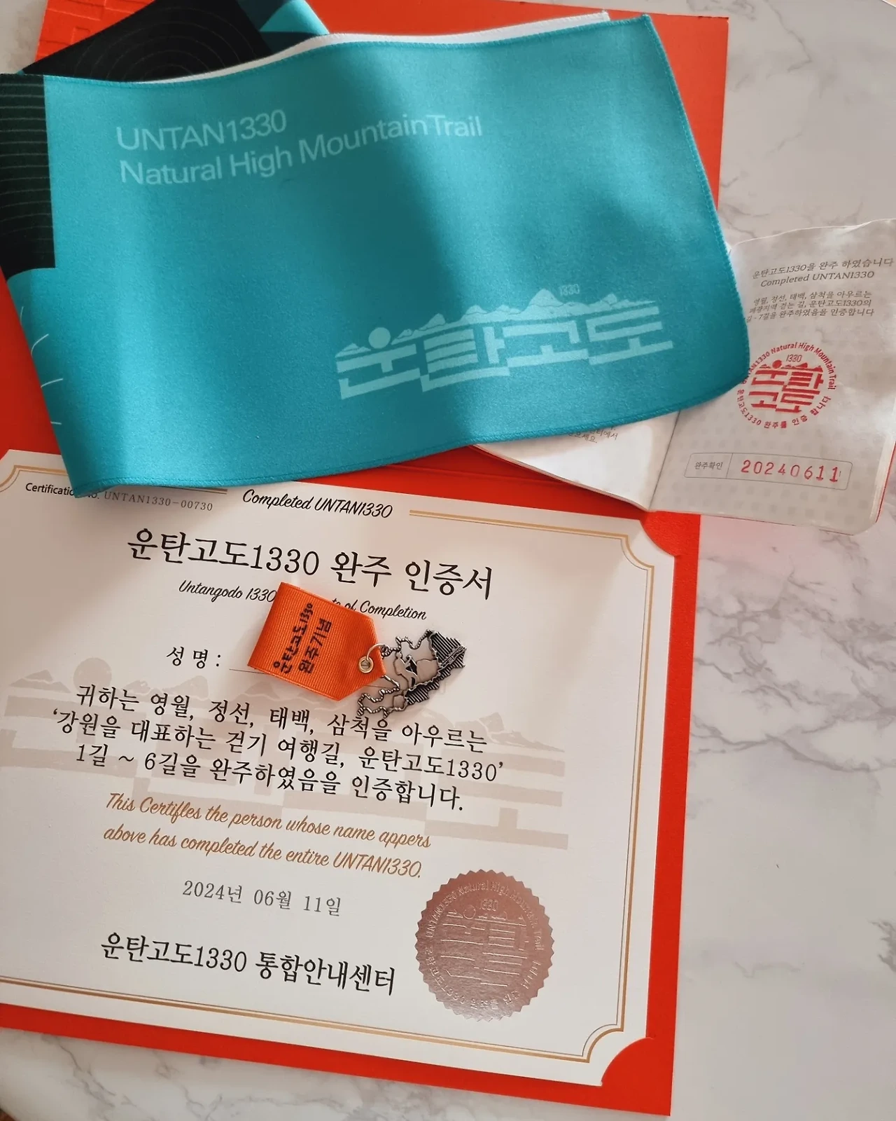 이 완주증을 받기 위한 6일동안의 120km 논스톱 트래킹은 정말 소중한 추억으로 남았다.정말 힘들고, 아름답고, 즐거웠다. 완주증을 볼때마다 흐뭇하고, 뿌듯하고, 행복하