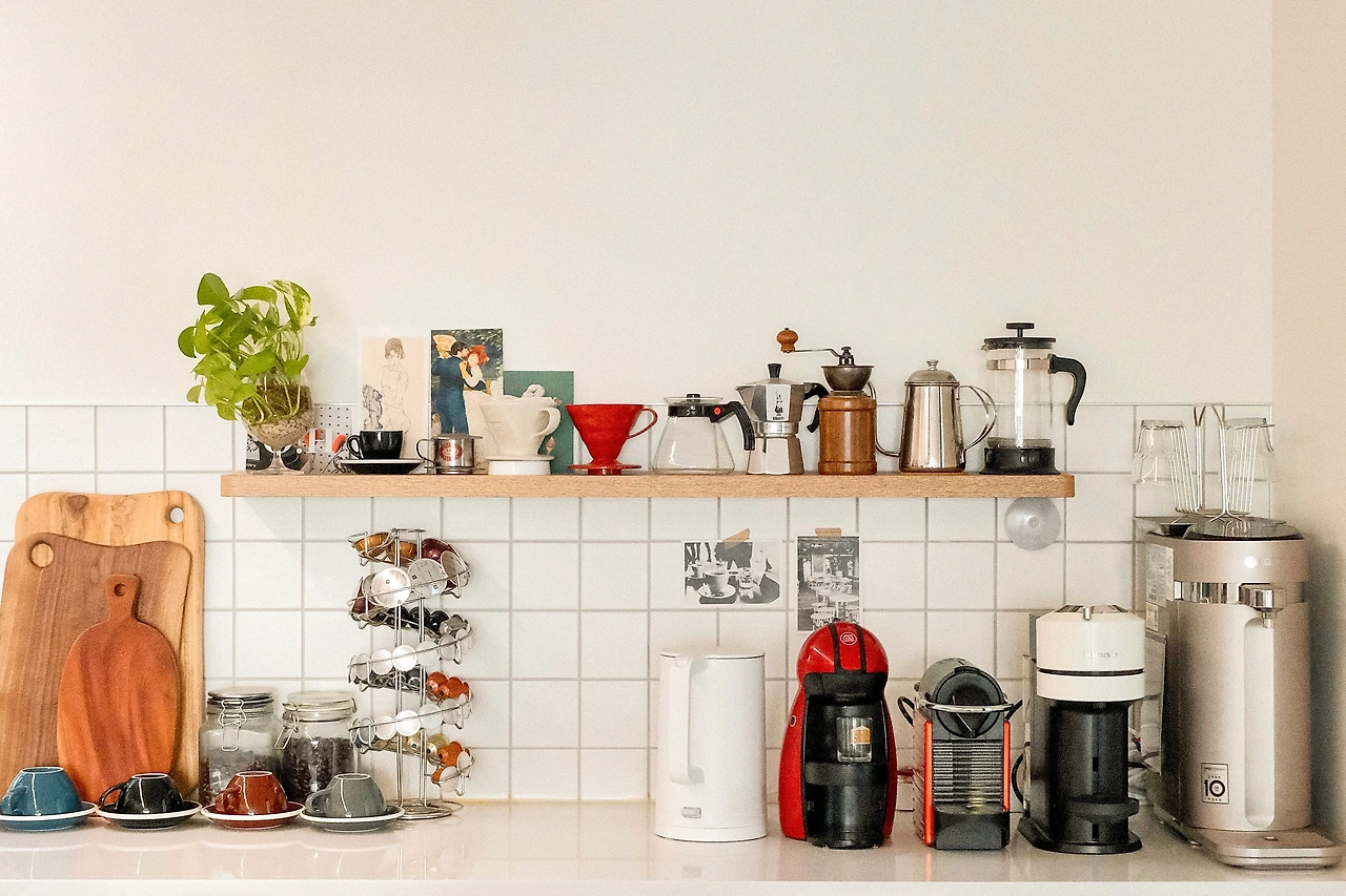 집에는 홈카페 공간도 있다. 주부들은 보통 부엌의 로망이 있다는데, 나는 부엌 한 켠에 홈카페 공간을 마련하는 것이 로망이었다. 지금의 우리 집으로 이사를 오면서 그 꿈은 이루어졌고, 나만의 홈카페를 바라만 봐도 흐뭇한 미소가 지어진다. 이 공간에는 세 대의 커피캡슐 머신과 핸드드립 기구들이 있다. 커피캡슐 머신은 돌체구스토, 네스프레소 오리지널과 버츄오 머신이 있는데, 번갈아가면서 마시는 재미가 쏠쏠하다.(사실 집에서 커피 내리기가 너무 귀찮아서 캡슐머신을 구비하다 보니 어쩌다 세 대 씩이나 되었다.)