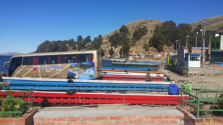코파카바나 버스 터미널에 탔다. 조금 재미있는 경험을 했다. 코파카바나는 호수로 둘러쌓여 있기 때문에 중간에 한번 배를 타야 한다. 버스 아저씨의 말을 듣고 하차하니 배 선착장이 보인다. 사람들은 따로 작은 배에 옮겨 타서 건너편에서 내린다. 그럼 우리가 타고 온 버스는 그냥 두고 새로운 버스를 타야 하는 것일까 하는 순간 버스도 배에 실려서 들어오고 있었다. 사람을 태우는 이동수단이지만 너도 물 위에서는 별 수 없구나 하는 생각이 잠시 들었다.