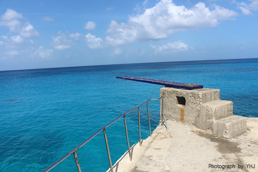 투어 버스를 이용하여 관광하던 날, 돌아다니면서 웨스트뷰(West view)에 있는 다이빙 명소를 발견했다. 그냥 바로 바다로 직행하는 다이빙대와 미끄럼틀이 있었다. 수영을 잘하던 다른 동행들이 골프카 드라이빙을 할 때 다시 가보자고 했던 것이다. 그들은 멋지게 다이빙에 성공하였는데.. 나에게 까지 권했다. 수영을 못하는 거야 구명조끼를 입으면 되는 것이고 뛰어들고 나면 잡아 주겠다고 했다. 평소 물가에도 안 가던 내가 무슨 용기가 들어 도전했는지는 모르겠지만 어쨌든 성공했다. 무서웠지만 성공했다는 뿌듯함과 일탈이라는 해방감이 더 기분 좋게 했던 경험이었다.