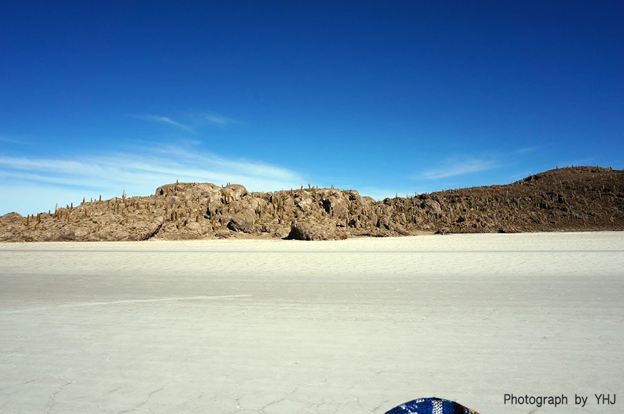 우유니 사막의 물고기 섬(Isla del Pescado)은 멀리서 바라보았을 때 형상이 물고기처럼 보인다 하여 붙여진 이름이다. 생명체가 살 수 없을 것 같은 곳인데 이렇게 멀쩡하게 식물들이 자라고 있었다. 가이드는 이곳에서도 잠시 머물러 전망대까지 올라갈 수 있는 시간을 주었다. 몇몇 사람들은 올라가고 있었지만 우리 팀이 생각하기에는 사막에서 올라가봤자 사막일 것 같은 느낌(!?).