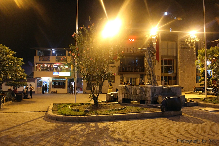 마을에 도착하니 이미 어둑어둑한 밤이다. 마을은 잉카문명의 마을이라는 느낌을 한껏 보여주는 곳이었다. 광장 한가운데 서있는 잉카인 동상과 한컷을 찍고 숙소로 향했다. 패키지에서 정해준 숙소는 조금 형편없었다. 따뜻한 물은 제대로 안 나오기 일쑤였고 광장에서 많이 걸어야 했다. 이번은 처음이라 그럴 수 있지만, 나중에 다시 오면 패키지 없이 그냥 직접 골라야겠다고 생각했다. 함께 패키지로 왔던 다른 사람들과 저녁 그리고 맥주를 먹고 다시 숙소로 돌아왔다.