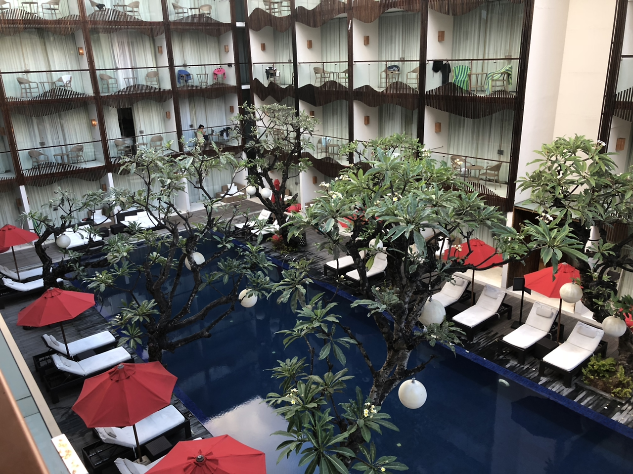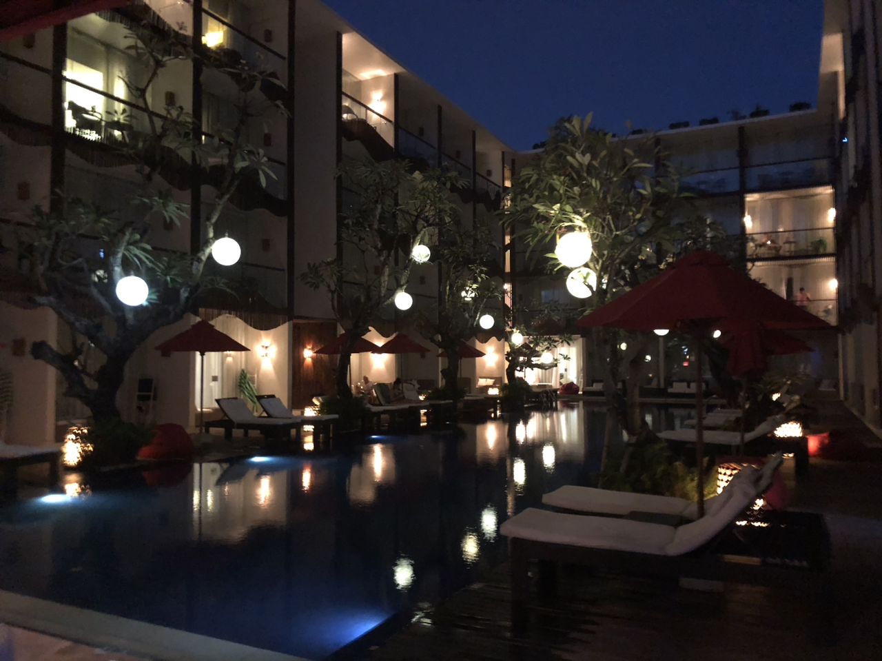 꾸따는 서핑과 나이트라이프로 유명한 지역인데, 큰 길가에 숙소를 잡을 경우 새벽에도 많은 교통량과 취객들 때문에 시끄러운 경우가 많다고 한다. 다행히 이 호텔은 골목 깊숙이 위치하고 있어서, 바깥의 소리는 전혀 들리지 않았다. (첫째 날 취한 외국인들이 소리를 지르며 수영장에 뛰어드는 바람에 잠에서 깼지만, 저녁 9시 이후에 수영장을 닫는 방침이 있기에 직원이 금방 와서 제지하였다)