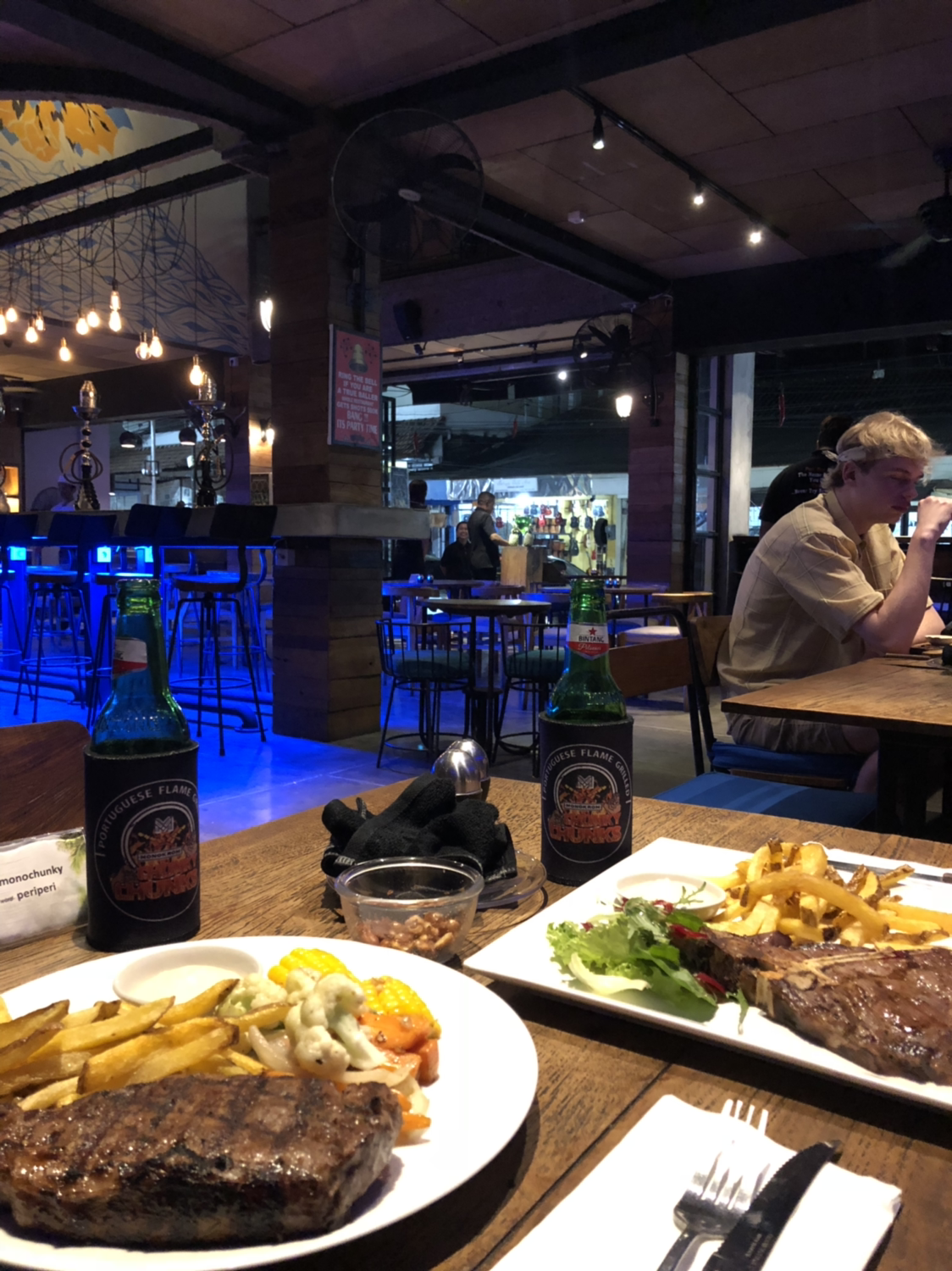 식당 찾아 삼만리 돌아다니다가 너무 배고파서 즉흥적으로 들어간 포르투갈 식당. 스테이크가 싸길래 포르투갈식 스테이크를 시켰다. 포르투갈 음식을 안 먹어봐서, 어떤 점이 포르투갈 음식인지는 잘 모르겠지만 나름 맛있었다! 스테이크 두 개에 맥주 두 잔 마시고 4만 원 정도 나왔고 직원들도 매우 친절했다.
