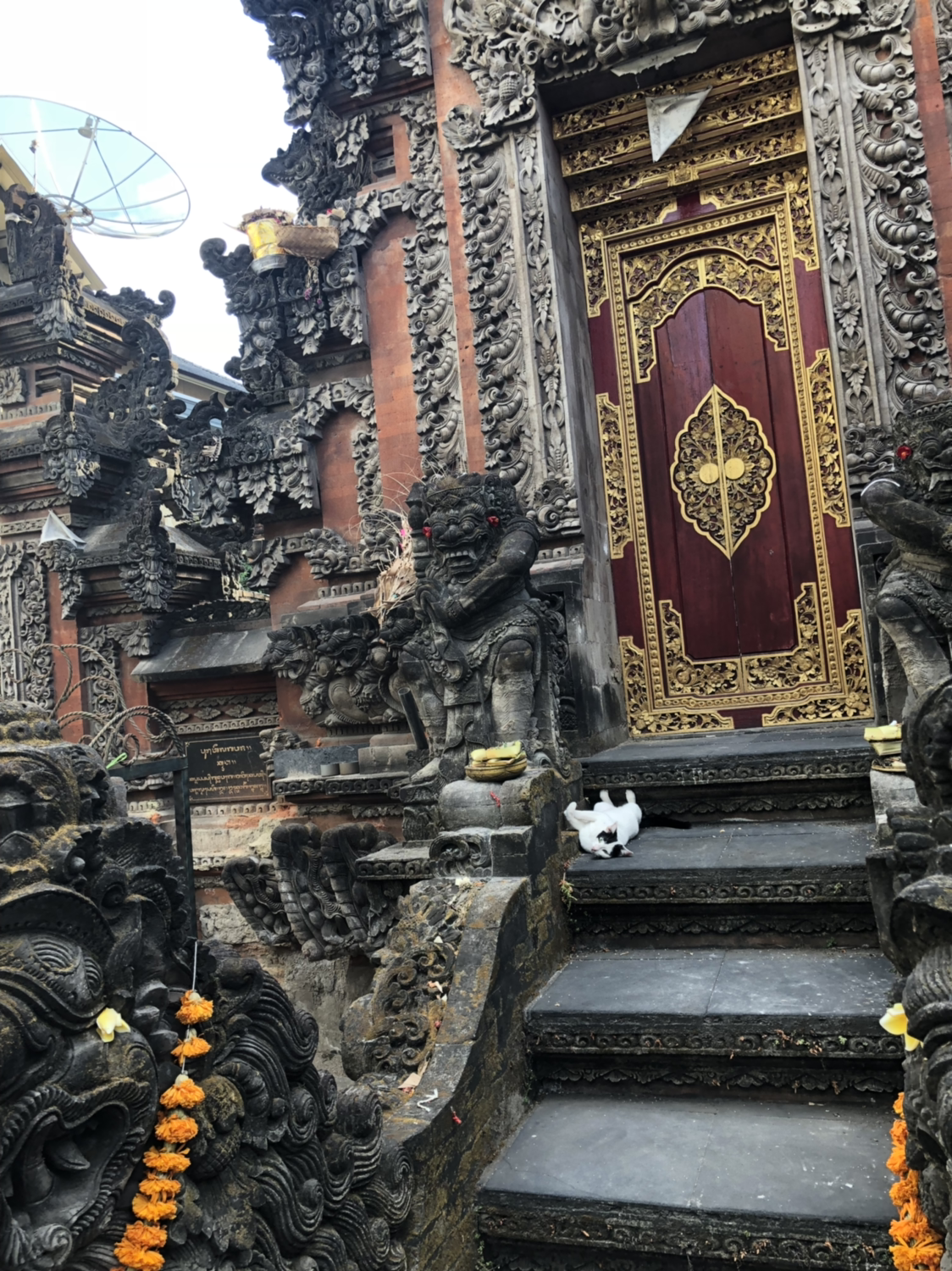 서핑을 마치고는 꾸따 시내의 골목골목을 돌아다녔다. 발리에는 곳곳에 작은 사원이 정말 많다. 관광지로 유명한 큰 사원들 외에도 골목을 돌아다니다 보면 작은 사원들을 볼 수 있는데, 발리에는 4천 개가 훨씬 넘는 사원들이 있다고 하며, 주민 한 명당 사원을 1-2개 이상은 책임지고 관리하고 있다고 한다. 보통 평범한 작은 사원들은 힌두교도들에게만 오픈하여 들어가 볼 수는 없었다. (하지만 고양이는 맘대로 들어가지)