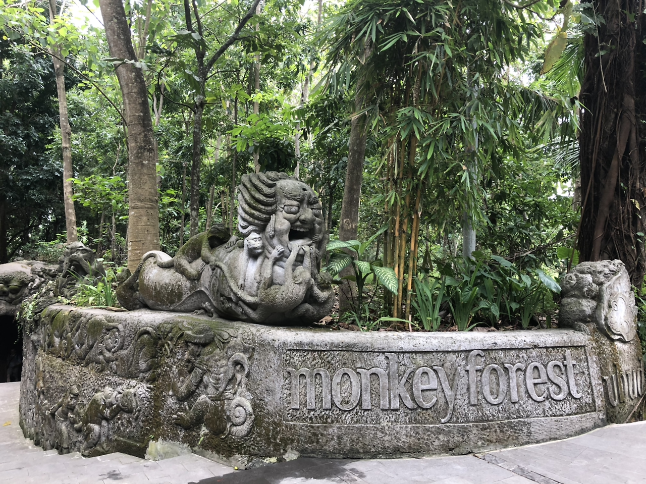 숙소가 몽키 포레스트 근처였던 덕분에 몽키 포레스트 앞을 수도 없이 지나다녔는데, 지나다니면서 늘 입구일 거라고 생각했던 곳은 입구가 아니었다. 오히려 숙소 바로 길 건너에 있던 몽키 포레스트 주차장으로 쭉 들어가니 매표소를 찾을 수 있었다. 원숭이 사원으로 유명한 울루와뚜 사원과 비교해서 훨씬 깔끔하고 잘 조성되어 있었다. 입구 쪽의 매표소와 조각상들도 굉장히 신경 써서 만들어 놓은 느낌.
