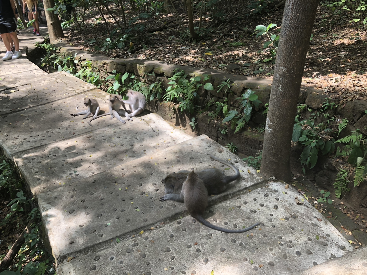 또한 바닥을 잘 보고 다녀야 한다. 아까 말했듯이 원숭이들이 인간을 전혀 경계하지 않는데, 한 아주머니가 사진을 찍기 위해 뒷걸음질 치다가 바닥에 누워있던 새끼 원숭이 꼬리를 살짝 밟았고, 어미 원숭이가 쏜살같이 달려와서 이빨을 드러내며 아주머니를 위협하였다.