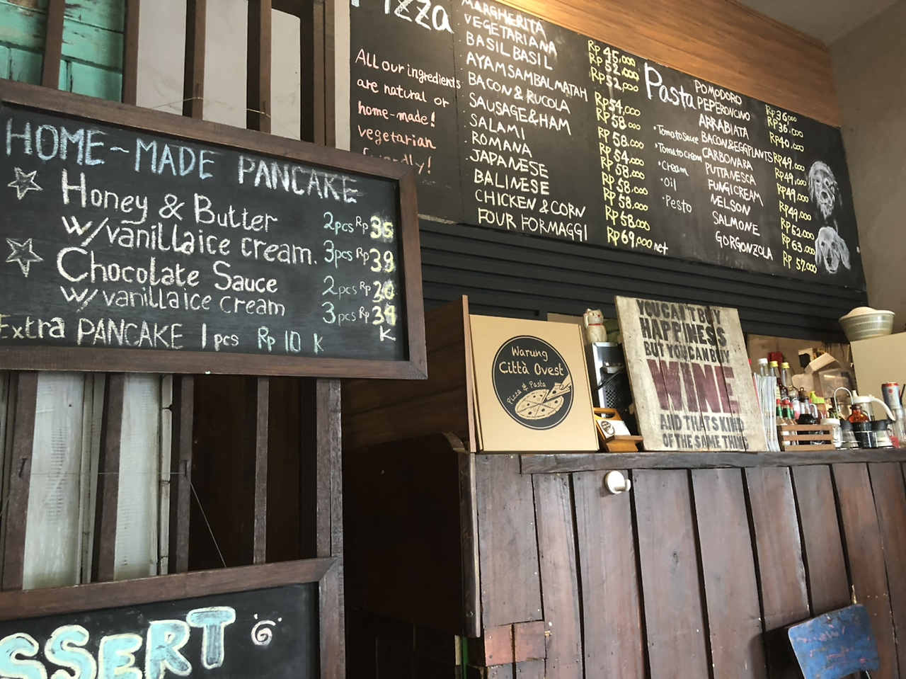 피자집 이름은 Warung Citta Ovest라는 가게였는데, 가게는 작았지만 사람들이 거의 꽉 차있었다. 피자와 파스타를 파는 집이었는데, 알고 보니 저녁에는 줄까지 서서 먹는 가게라고 한다. 피자는 매우 얇고 작은 편이어서, 서양인들은 대부분 1인 1피자를 먹고 있었고, 여성 동양인들은 1개로 share 하고 있었다. 나 같은 피자 애호가로서는 당연히 1인 1피자다!!