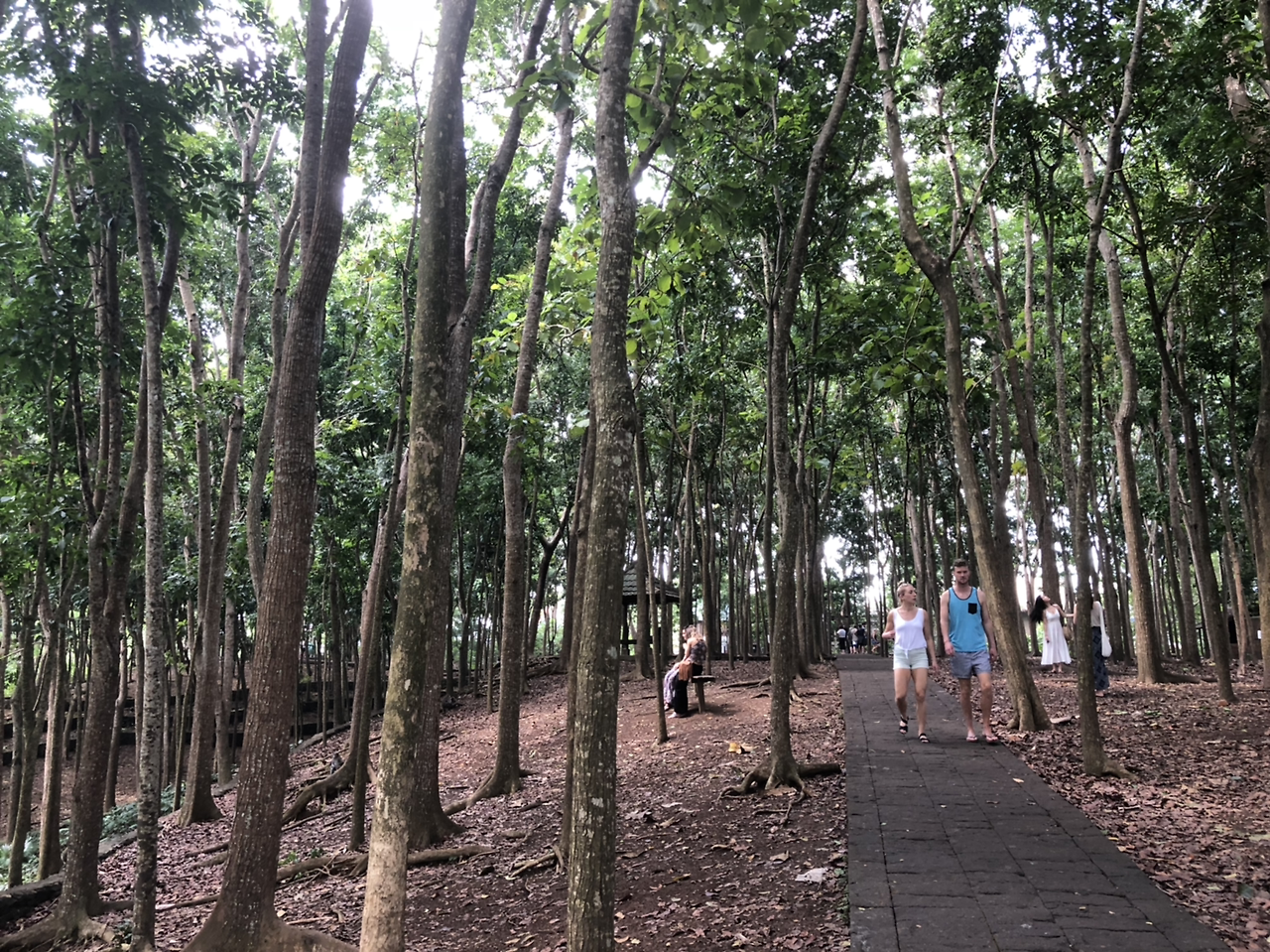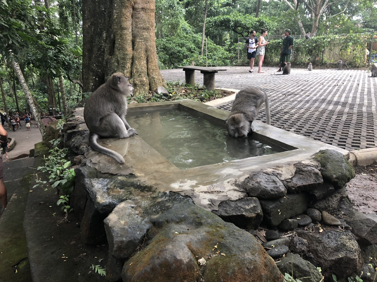 우붓 여행할 때 날씨가 너무 더울 때는 몽키 포레스트를 추천한다. 이름에 걸맞게 내부가 정글처럼 되어있다 보니, 키 큰 열대 나무들로 우거진 숲 속은 매우 시원했다. 몽키 포레스트 내부에 작은 계곡이 있어서 물도 흐르기 때문에 계곡 근처는 더더욱 시원했다.