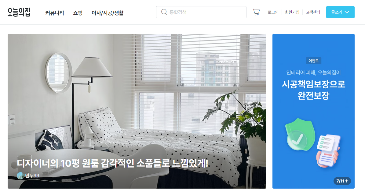인테리어가 필요할 때, 필요한 정보를 한 곳에서 모두 모아볼 수 있는 플랫폼 '오늘의 집'은 단순히 커뮤니티 메뉴를 개설해 놓은 데서 그치지 않는다. 메인 화면에서도 볼 수 있듯이, 실제 사용자들이 인테리어 관련 콘텐츠를 높은 퀄리티로 발행하고 있다. 자신만의 콘텐츠를 자신만의 스타일로 녹여내니 이목을 끌기에도 충분하고, 실제 생활을 담았다 보니 일반 사용자들의 관심도 높다. 콘텐츠를 통한 정보를 얻는 것뿐만 아니라, 전문 시공업자와 상담까지 가능한 곳이니 편의성까지 갖추었다.