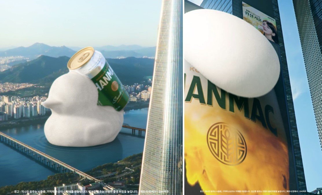 한맥은 공식 인스타그램에 '[속보] 한강에 초대형 거품 오리 출몰'이라는 제목으로 영상을 공개한 적 있다. 영상에서는 한맥의 부드러운 거품을 연상시키는 초대형 우리가 한맥 캔을 등에 업고 석촌호수 위를 둥둥 떠다니고 있는 모습을 볼 수 있다. 거품 오리는 대교를 쉽게 지나가는 등 물 위를 떠다닌다.