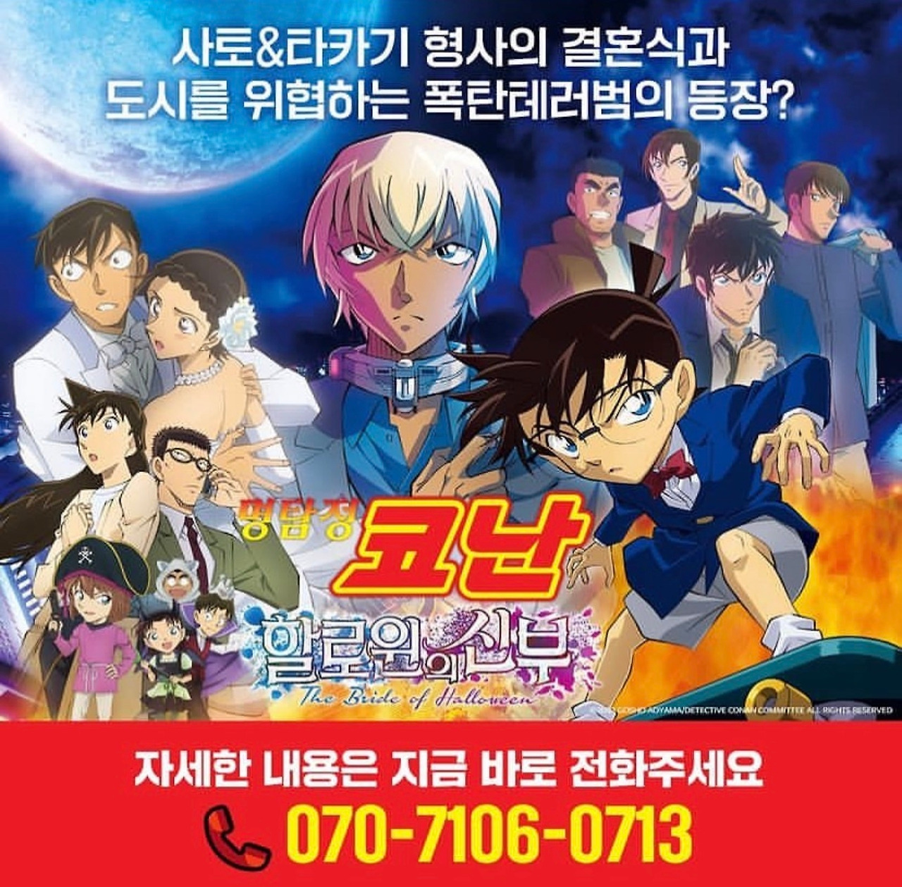 위 대화는 애니메이션, 명탐정코난 극장판이 개봉을 앞두고 진행된 첫 번째 이벤트, ARS 이벤트에서 실제로 들을 수 있었던 통화 내용이에요. 2022년 7월 개봉한 '명탐정코난:할로윈의 신부'는 경찰 동기들과의 악연으로 이어진 폭파범이 3년 만에 다시 나타나 도시 전체를 위협하고, 절체절명의 위기를 막기 위한 주인공들의 공조를 그린 추리 미스터리 극장판이에요.