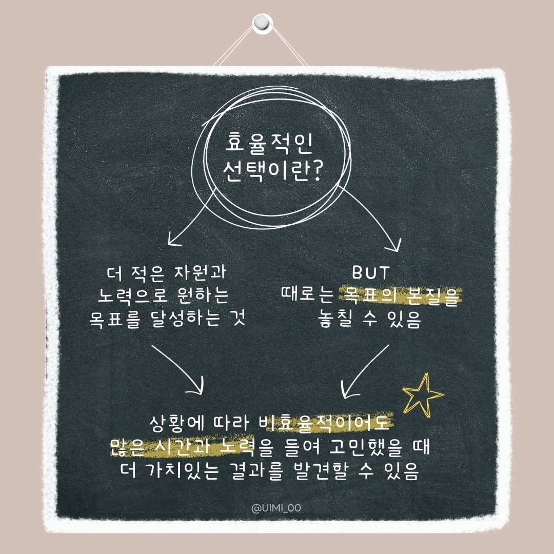 그런데 때로는 가장 효율적인 방법이 좋은 선택과 동일하진 않을 때도 있더라고요. 저도 사실 효율적으로 보였던 선택을 했다가 후회한 적이 있었거든요.