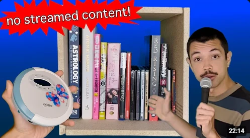 이전 영상을 너무 인상적으로 보아서, 해당 유튜버의 다른 영상도 시청해 보았습니다. 이번 영상의 주제는 '오직 도서관에서 빌린 콘텐츠만 소비하기'였는데요. 알고리즘의 추천에서 완전히 벗어나 우연히 접한 콘텐츠로 새로운 관심사에 흥미를 붙이게 된 과정이 흥미로웠습니다.