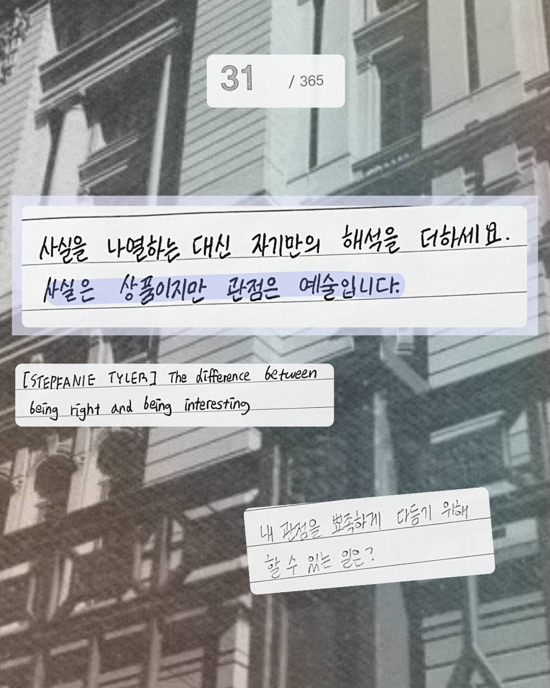 “사실을 나열하는 대신 자기만의 해석을 더하세요.