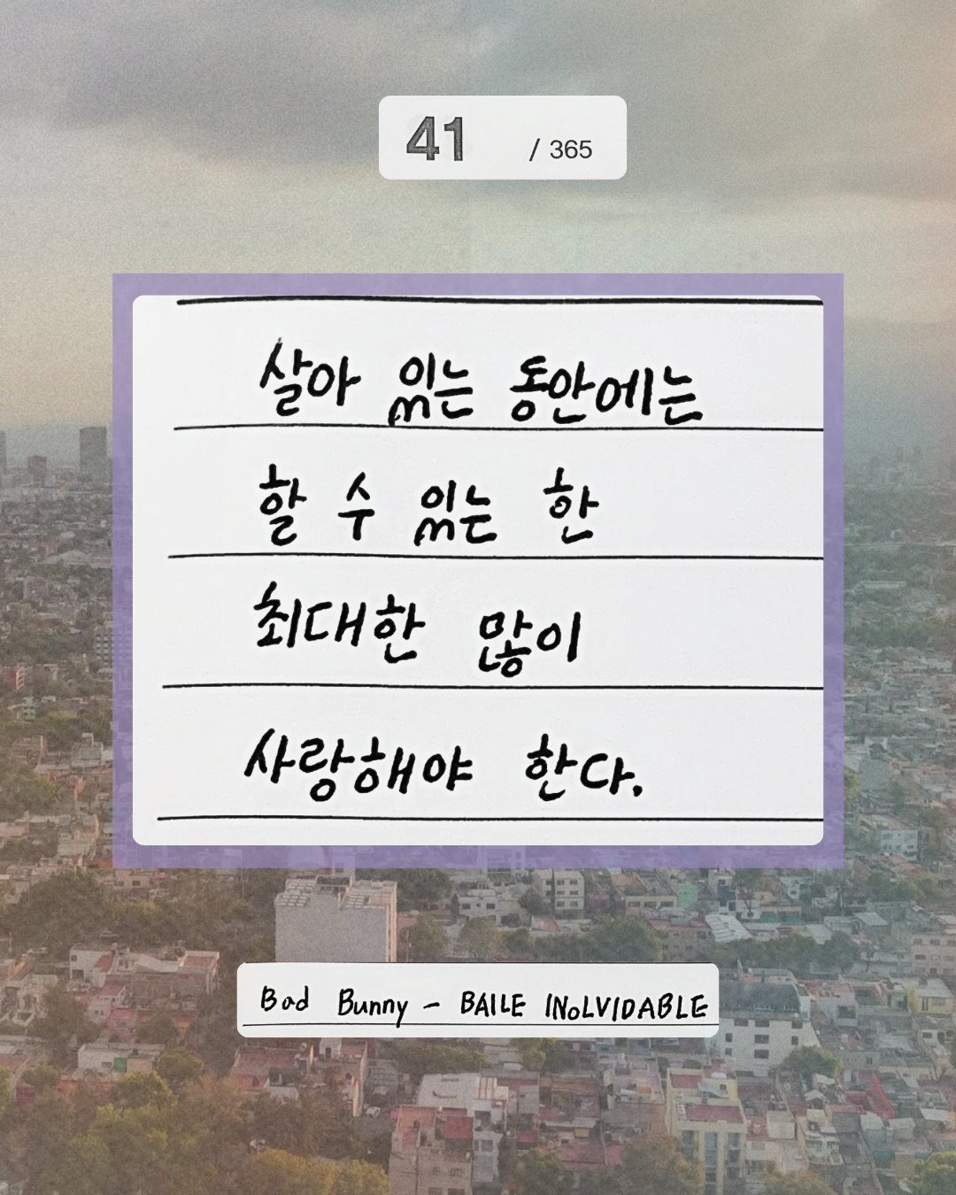 요즘 정말 인기 있는 곡을 한글 가사와 함께 듣다가 발견한 문장. 아주 짧게, 단 한 번 등장하는 내레이션이었지만 이 문장이 곡의 전체 메시지를 함축한 것 같다.