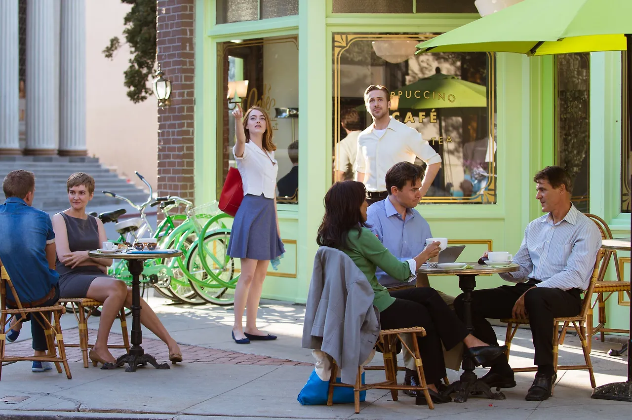 내가 몇 번이나 되풀이해서 재생했던 노래를 낯선 카페와 낯선 나라에서 우연히 마주친 것과 마찬가지로, 영화 라라랜드에서는 특별할 것 없는 고속도로 위에서 꿈을 가진 이들이 서로를 발견한다. 셉과 미아가 아닌, Another day of sun을 노래하며 영화의 시작을 알리는 인물들 말이다. 나와는 별개의 존재처럼 보였던 자동차 속 각각의 개인이 밖으로 나와 한 목소리로 꿈에 대해 함께 이야기하며 서로가 서로와 같다는 것을 알린다. 그러다가 다시 일상 속으로 돌아와 경적 소리를 끝으로 마무리를 하려다가 It's another day of sun.이라고 툭 내뱉으며 재차 이들 모두가 꿈을 가진 존재임을 알린다. 그리고 그 뒤로 셉과 미아의 모습이 차례로 나오며 스토리가 진행된다.