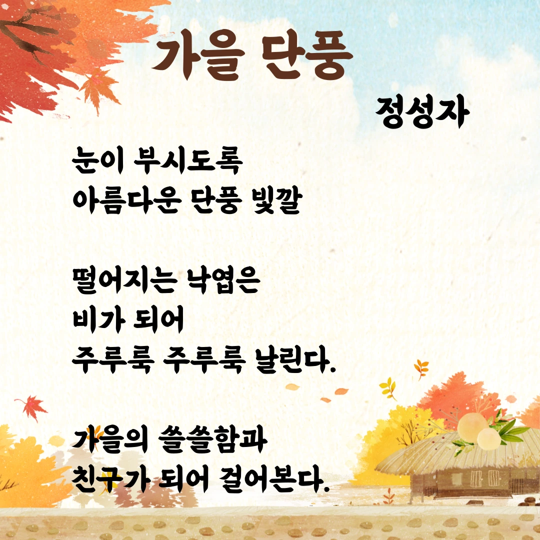 [엄마] “작가의 의도를 잘 파악해야지. 시 대충 읽은 거 아니야? 다시 잘 읽어봐. 내가 설명해 줄게. 집에서 나오는데 단풍이 너~~ 무 아름다운 거야. 그러면서 가을의 쓸쓸함과 외로움이 느껴져서 썼지.”