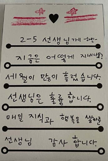 이런 소중한 마음에 힘입어, 6학년 다시 힘내어 열심히 가르쳐 봐야겠다.