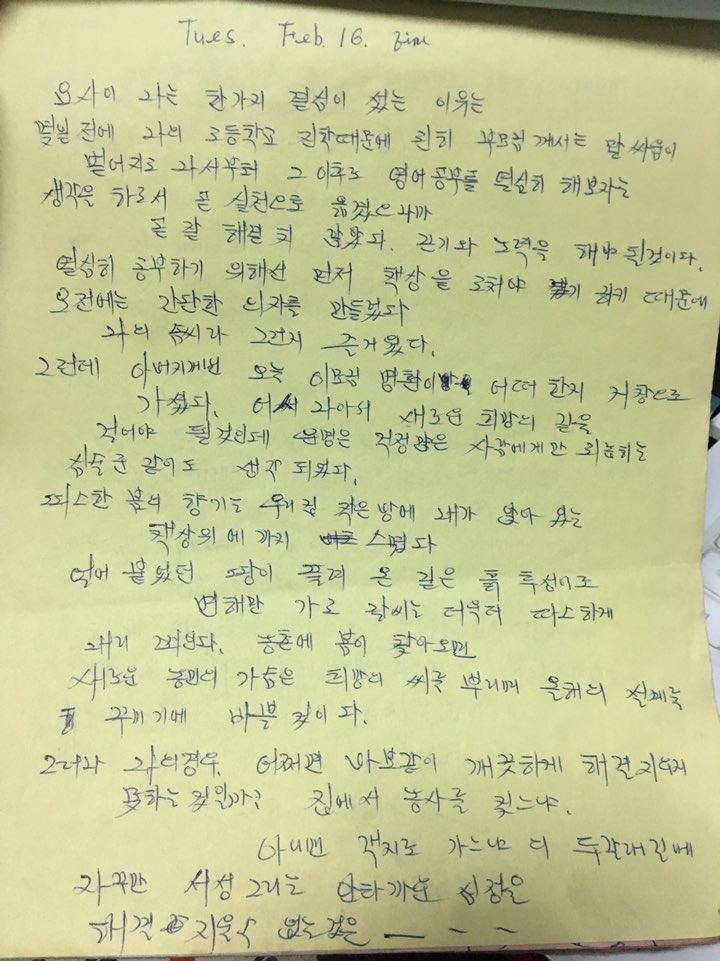 하, 그런데 아빠의 일기장을 쓰기에도, 아빠의 자료를 정리하기에도 내 역량이 부족한 것 같다. 그러다가 일기장의 한 면에서 멈추었다. 아빠가 공부가 하고 싶었는데, 가난 때문에 고등학교에 진학하지 못했던 아빠의 한이 담긴 일기였다. 마음이 미어져온다.