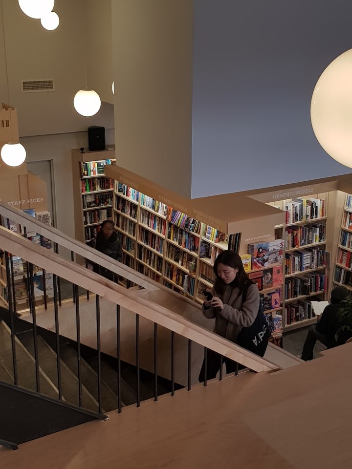 잘 팔리는 책보다 읽어볼만한 책들을 적절하게 큐레이션해놓은 모습이 좋았다. 그리고 서점에 드나드는 지역주민들의 자연스러운 모습을 보며, 맥널리 잭슨이 지역사회에서 가지는 존재 가치를 엿볼 수 있었다. 서점 직원과 주민들이 친근하게 대화를 나누는 모습도 기억에 남는다. 그리고 나는 빛, 조명에 관심이 많은 편인데, 맥널리 잭슨의 천장을 구성하는 심플한 조명들이 예뻤다. 서점 안 공간의 조도를 적절하게 구성했고 따뜻한 분위기까지 연출했다.