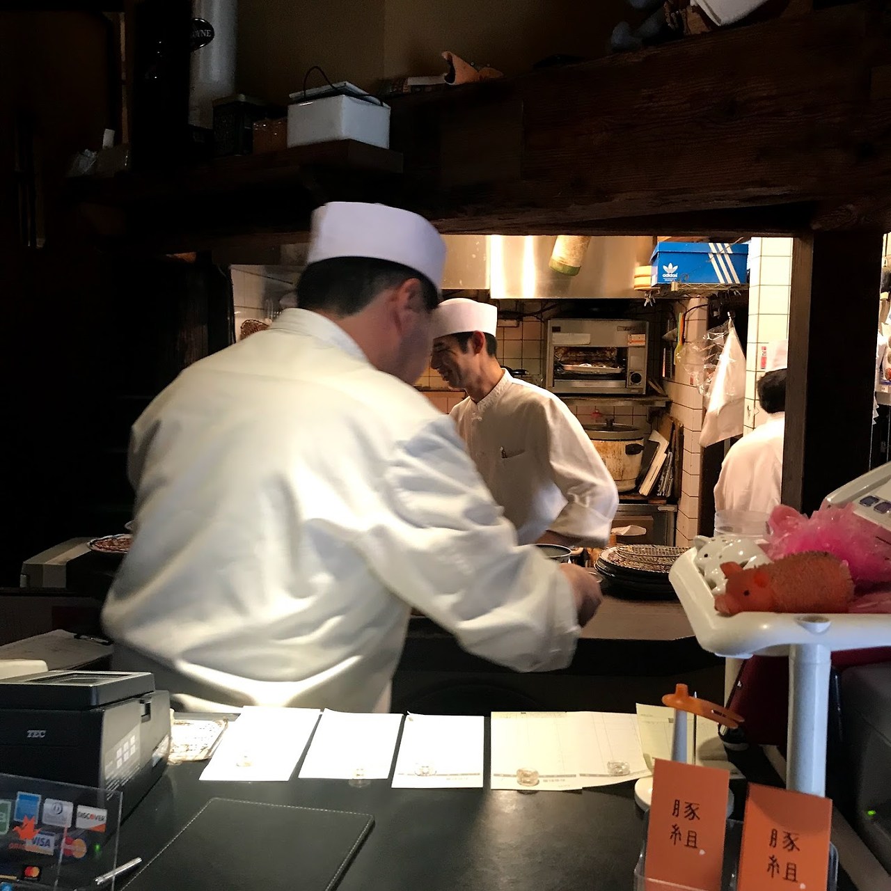 출장 마지막날 퇴근 후 개인 여행 시작겸, 아사쿠사에 있는 탄탄멘 식당에 들렀다. 직장인들 뒤에 줄을 서서 기다리는데, 일본의 일상에 쏙 들어가는 기분이 들었다. 식당에 들어서니 오픈키친에서 누가 봐도 요리 고수이신 듯한 분위기를 뿜으시는 할아버지 요리사께서 열심히 탄탄멘을 만들고 계셨다. 운 좋게 오픈키친 바로 앞 자리에 앉아 요리하시는 모습을 힐끔힐끔 볼 수 있었다.