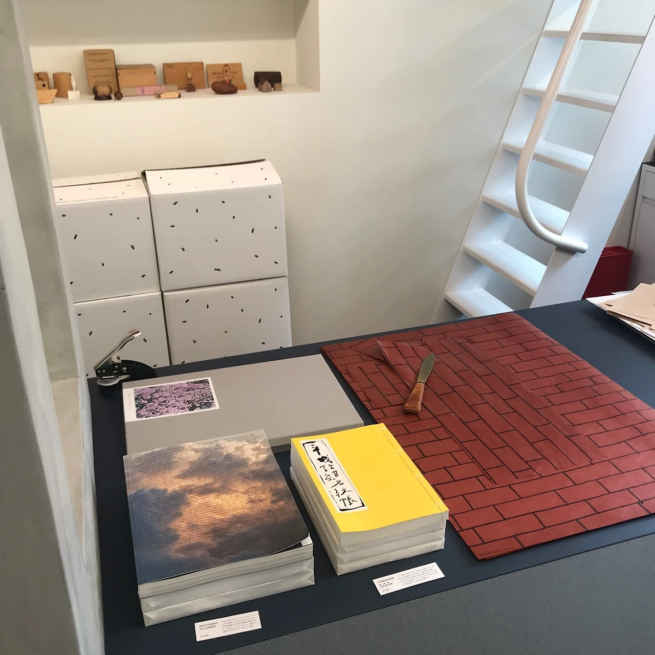 참새가 방앗간을 그냥 지나칠 수 없듯 들른 문구점, PAPIER LABO. 종이 그리고 종이와 관련된 제품들을 파는 곳인데, 선반 위에 올려진 제품들을 보면 고심 끝에 선택된 제품들이라는 점이 자연스레 느껴졌다. 하나하나 구경만 해도 기분이 좋아지는 마법의 문구점. 카운터에 올려져있던 벽돌 무늬 포장지에도 눈이 갔다.