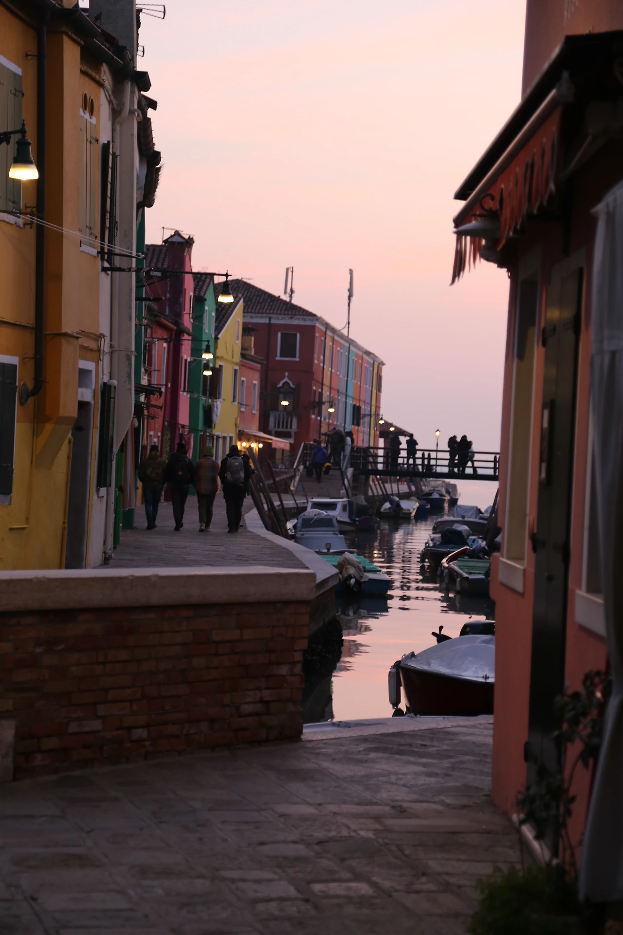 부라노 섬은 알록달록 컬러풀한 마을로 유명했다. 마을 곳곳을 돌아다니며 사진을 찍다 보니 노을이 지기 시작했다. 그 배경이 너무 아름다워서 어떤 다리에는 그 모습을 찍기 위해서 카메라를 설치하고 기다리는 다국적 사진사들이 있었다. 우리나라 사람들도 보였다. 우리도 그 틈에 끼어서 사진을 찍기 시작했다.