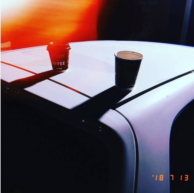 재환의 차 위에 올려둔 음료. 종종 재환과 나는 퇴근길에 편의점에 들러 음료를 마시곤 했다. 이때는 한참 추웠던 7월.