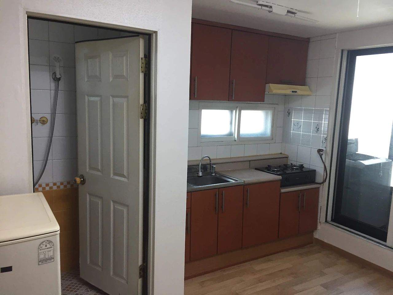 싱크대, 세탁기, 냉장고, 옷장 등 제공되는 옵션들은 낡았지만 깨끗하게 관리되어 있었다. 베란다와 창으로 들이치는 햇살을 가득 머금은 장판 위에는 이미 누군가들이 보고 갔는지 무수한 발자국이 찍혀있었다. 물을 틀어보고 변기 물도 내려보고 이상이 없음을 확인한 후에 가격을 물었다.