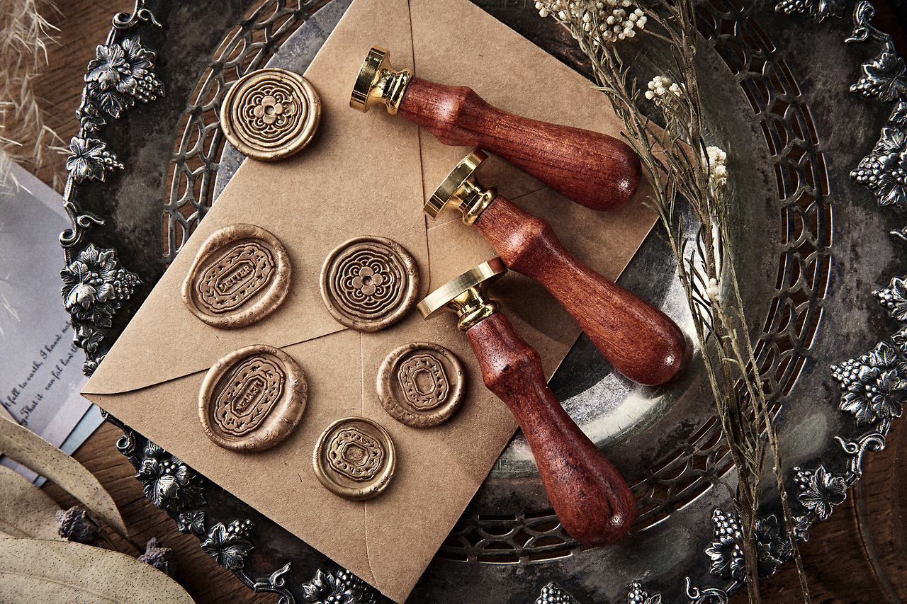 먼저 실링왁스 스탬프는 타원형 스탬프와 25mm 원형 스탬프, 그리고 22mm 원형 스탬프로 각각 형태가 다른 3종류다. 하나씩 소개해본다.