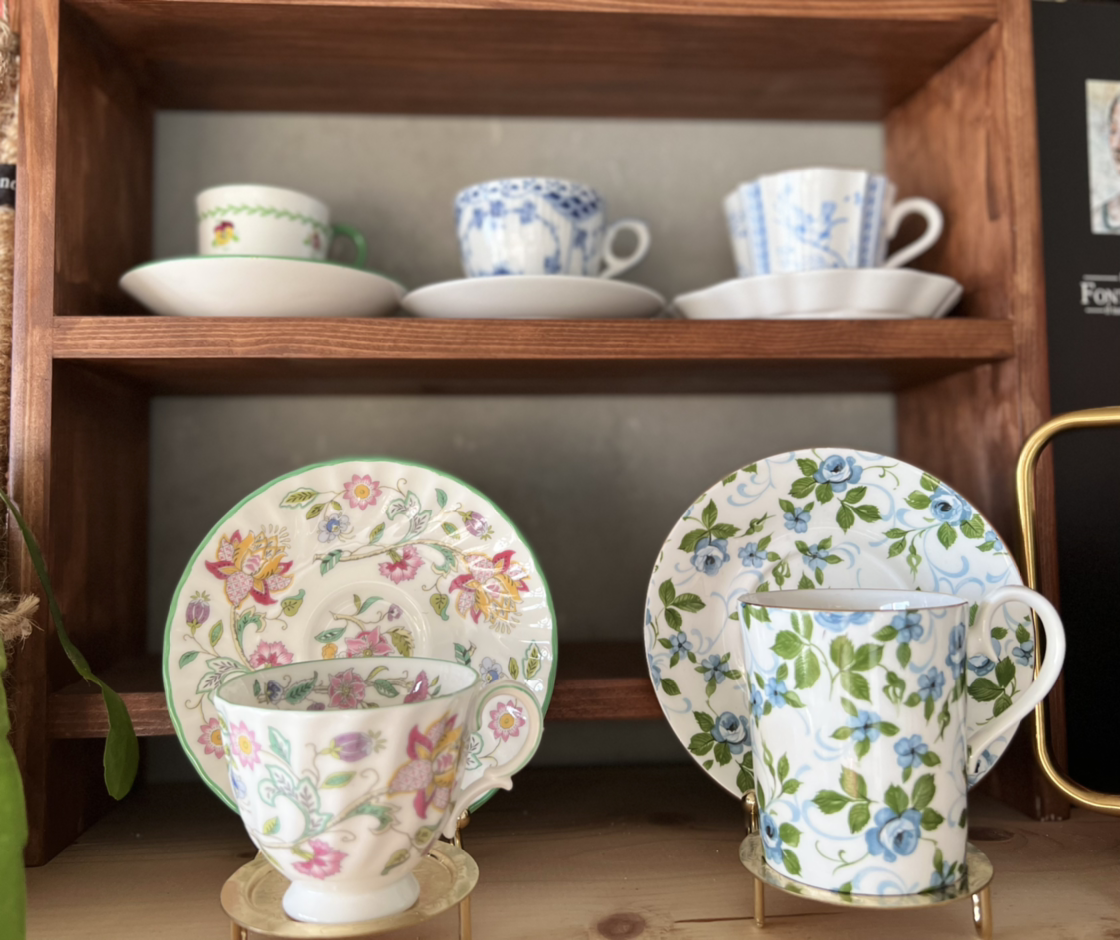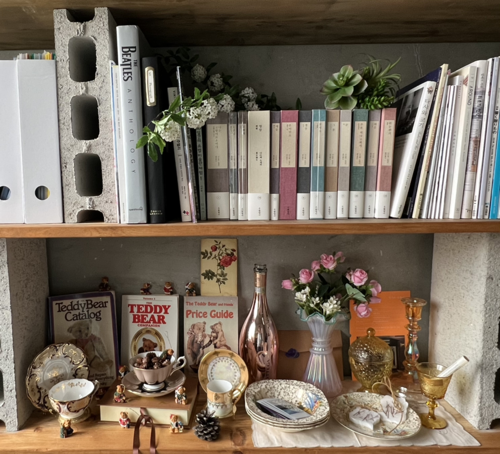 다른 공간들에서도 보이 듯 우리 집에는 빈티지가 많다. 각자의 공간에 맞게 적절히 빈티지 아이템들을 두고 있는데 서재에는 빈티지 찻잔이나 빈티지 소품들을 진열해 놓는다. 적절한 공간을 찾아 분위기에 어울리는 아이템들끼리 모아 아기자기하게 소품샵처럼 꾸며본다. 하나하나 소중하게 다뤄준다.