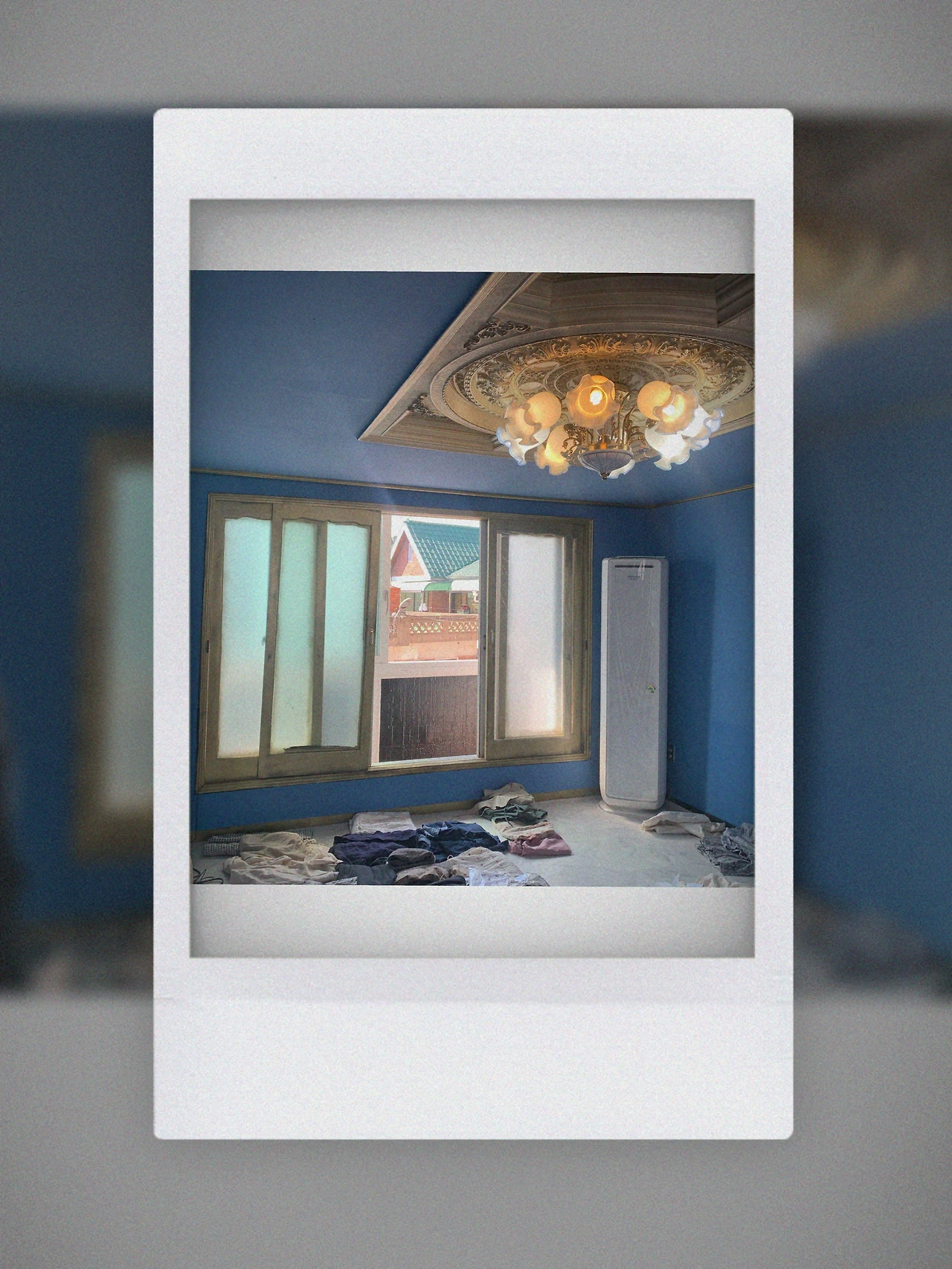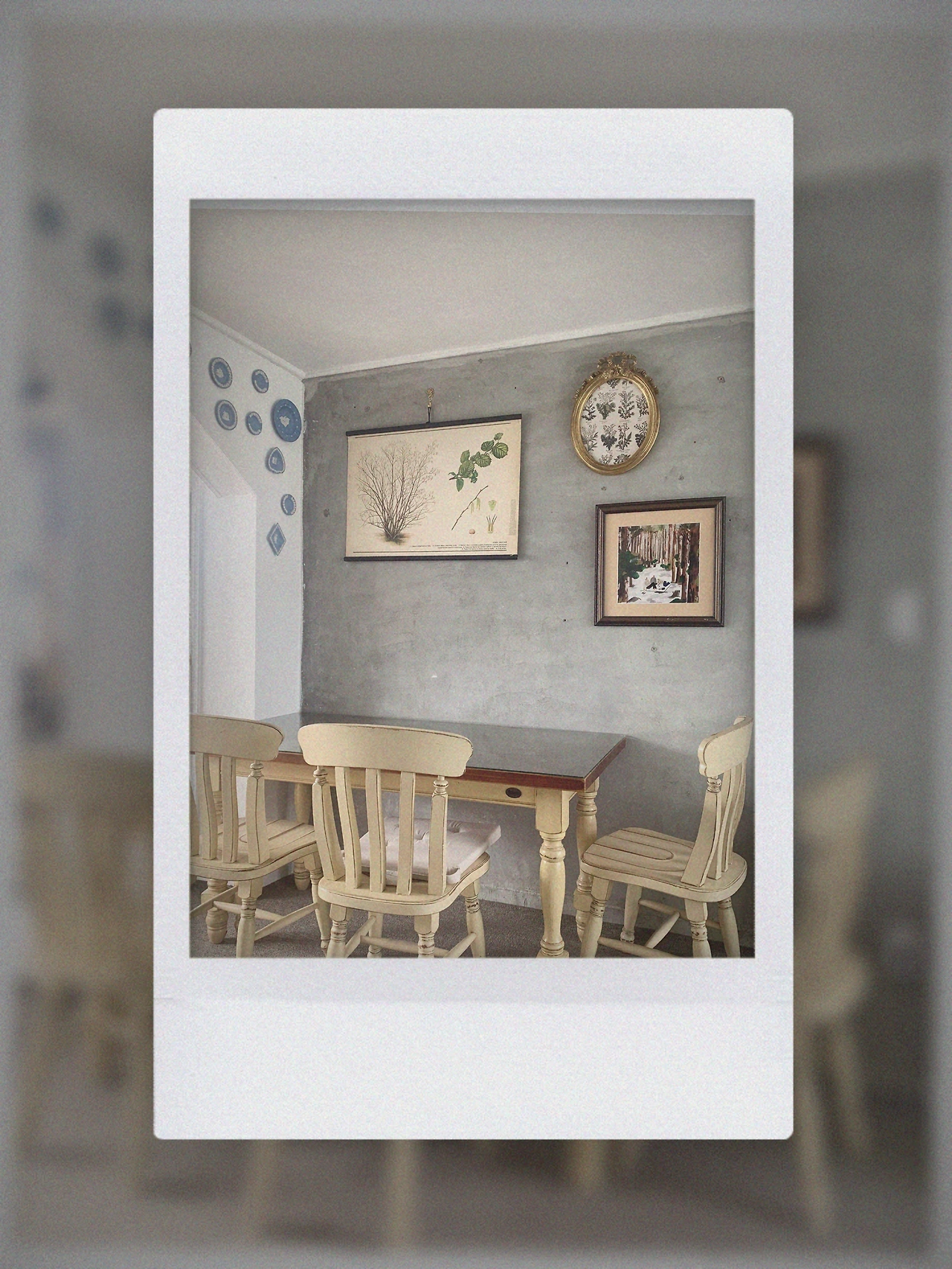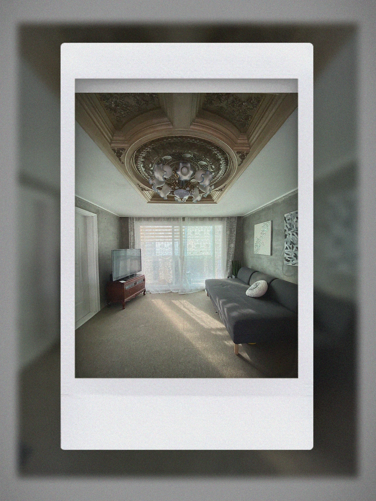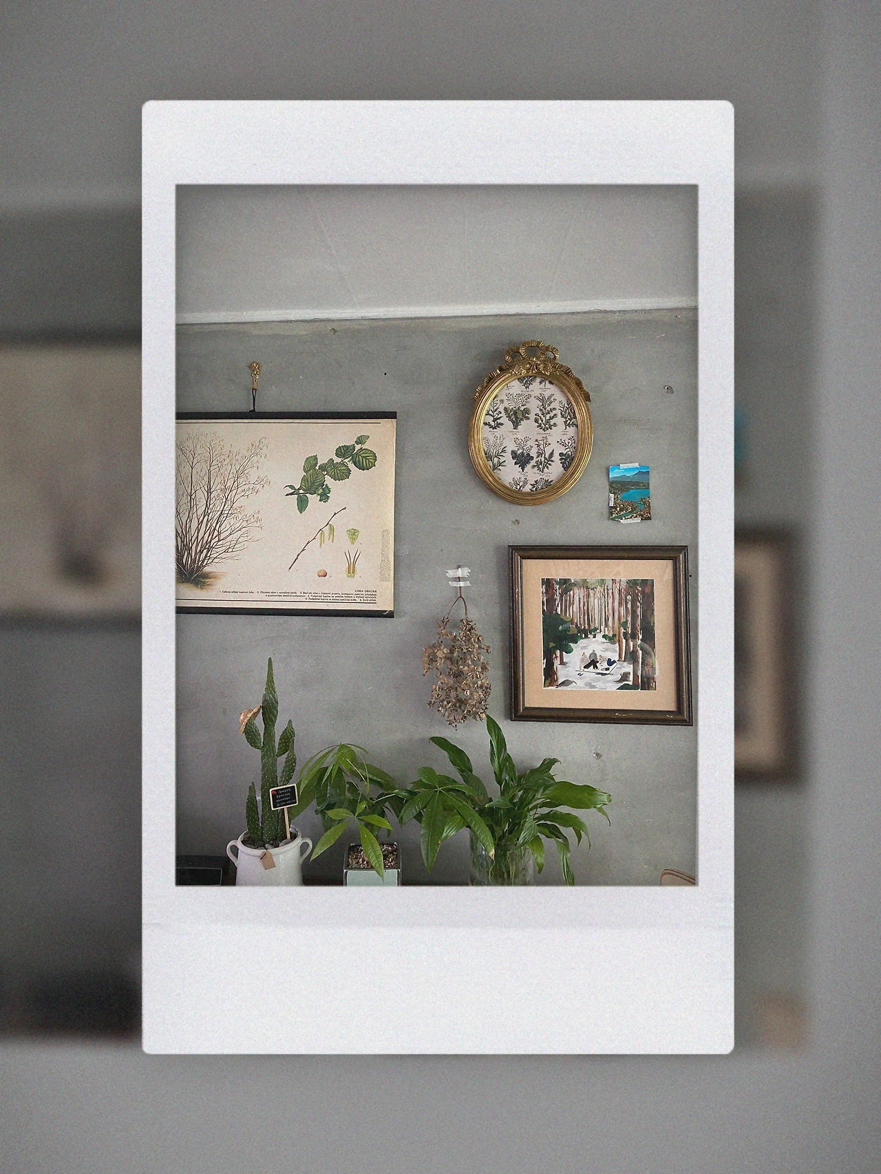 노출 콘크리트 특유의 서늘한 느낌은 그림을 좋아하는 나에게는 도화지 같은 존재다. 언제든지 원하는 액자와 장식들로 꾸밀 수 있다. 더 이상 못질을 원하지 않았던 주인아주머니의 말씀이 있어서 액자의 배치는 벽지를 뜯고 난 뒤 발견된 못 자국 구멍을 통해서만 할 수 있었다. 벽지 없는 콘크리트 벽은 언제든지 내가 좋아하는 그림과 장식들로 꾸밀 수 있다.