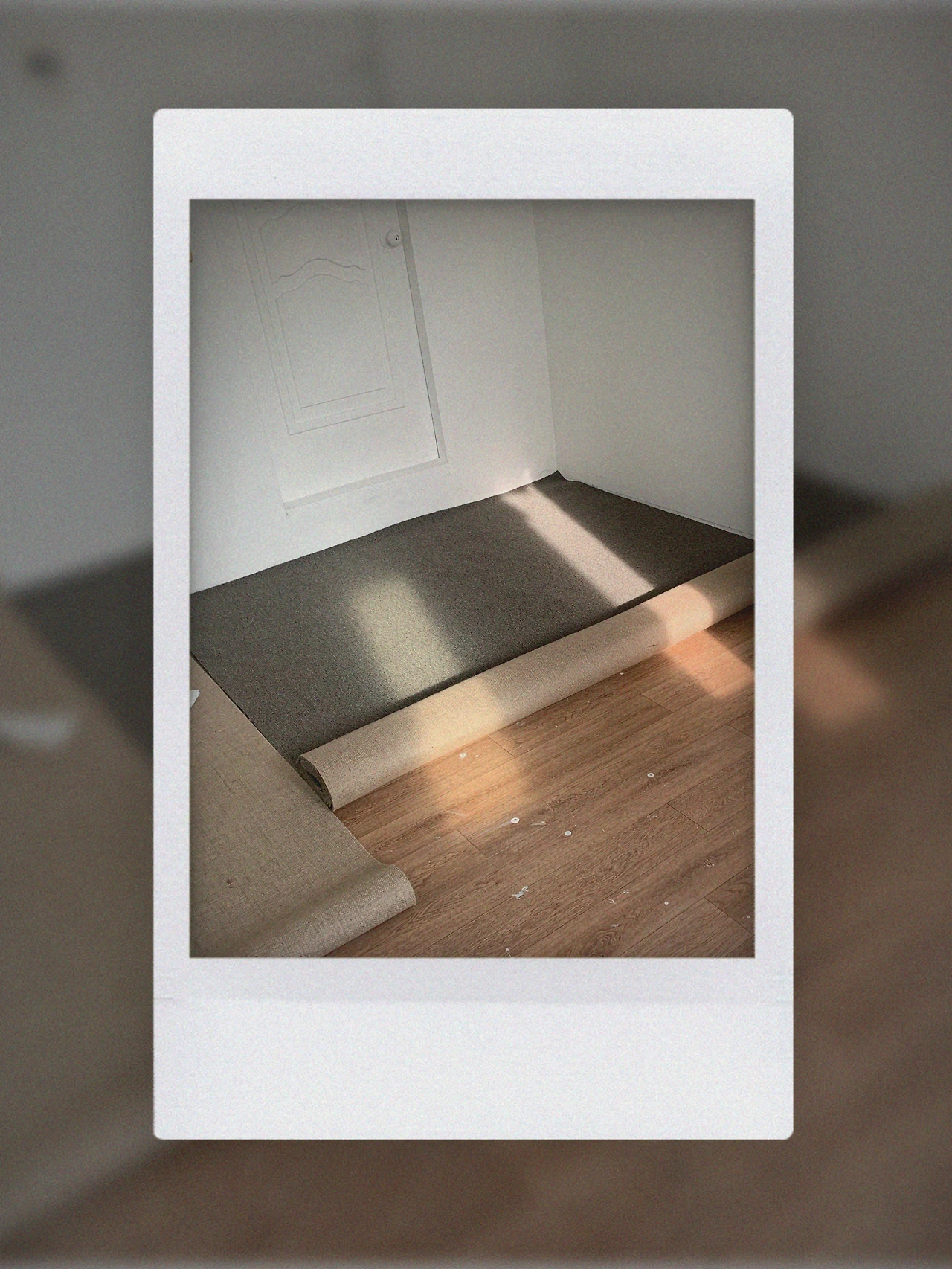 나는 장판 바닥이 싫다. 저렴한 가격의 가장 실용적인 바닥재 일지는 몰라도 대리석이나 목재로 프린팅 된 페이크 비닐은 나의 미학적 관점으로는 허용하기 어려운 소재다. 처음부터 바닥 장판은 없애려고 했다. 대체용으로는 원목마루나 강화마루, 강마루, 온돌 마루 등 고가 바닥재가 있고 데코타일, 카펫 등 비교적 저렴한 바닥재가 있다.