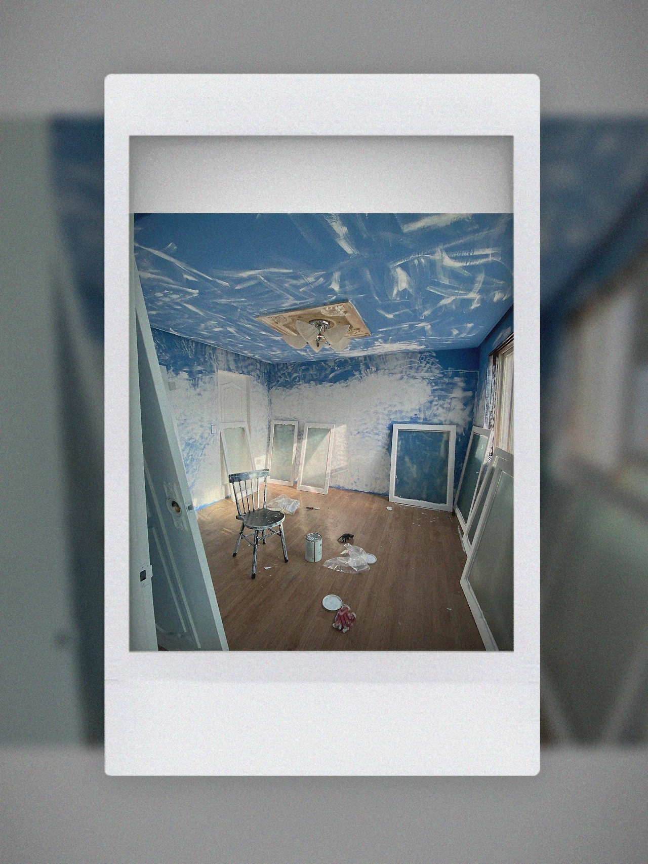 우리 집은 90년대에 지어진 구옥이니만큼 여러 번 벽지를 덧방 했던 데다 화룡점정으로 전세입자가 벽지 위에 파란색 페인트 칠을 해버려서 그 위에 다시 벽지를 바르기도 힘든 상태가 되어버렸다.