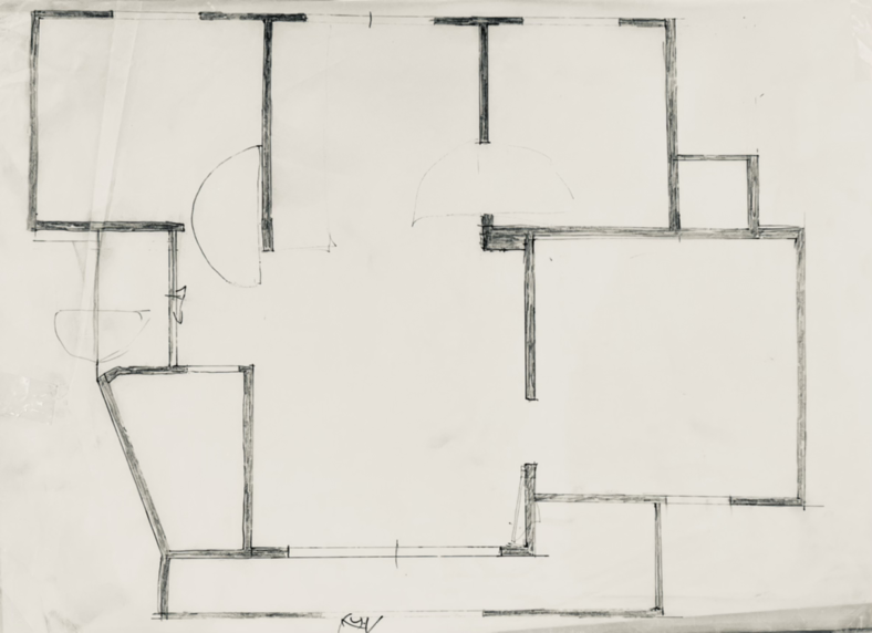 종이와 펜, 삼각 스케일자를 가지고 간단한 도면을 새롭게 옮겨 그렸다. 벽과 문, 창문만 그려놓아 공간의 구조만 알아볼 수 있게 했다. 이제 베이스가 완성된 것이다.