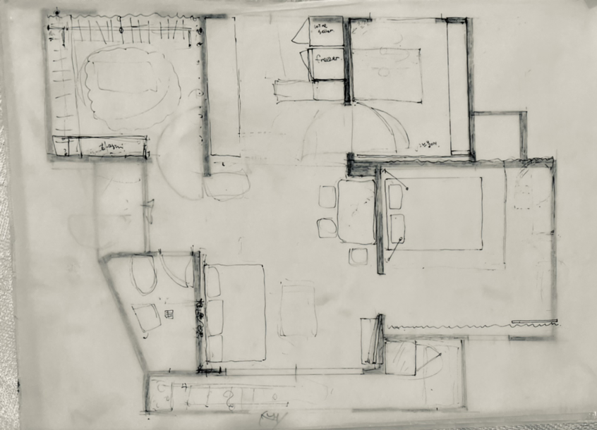 나중에 남편이 메모한 종이를 보더니 자기는 도저히 못 알아보겠단다. 그럼 이제 나만 해독할 수 있는 이 그림을 도면으로 옮겨 그려야 할 시간이다.