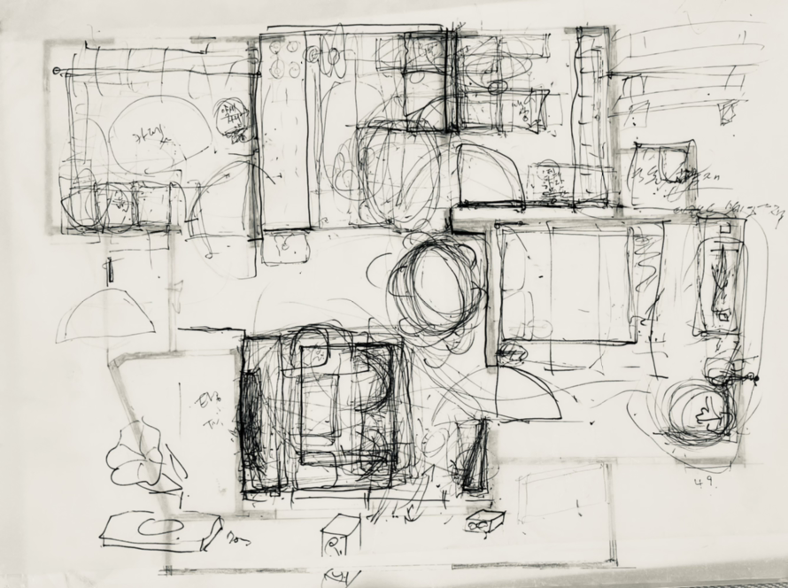 기본 도면이 그려졌다면 기름종이라고 불리는 트레이싱지를 올려 다양한 패턴으로 도면을 그려본다. 이렇게 그리는 이유는 기본 도면 위에 바로 그리면 일일이 지우거나 처음부터 도면을 다시 그려야 하는데 트레이싱지를 기본 도면 위에 대고 그리면 다양한 케이스를 그려볼 수 있기 때문이다.